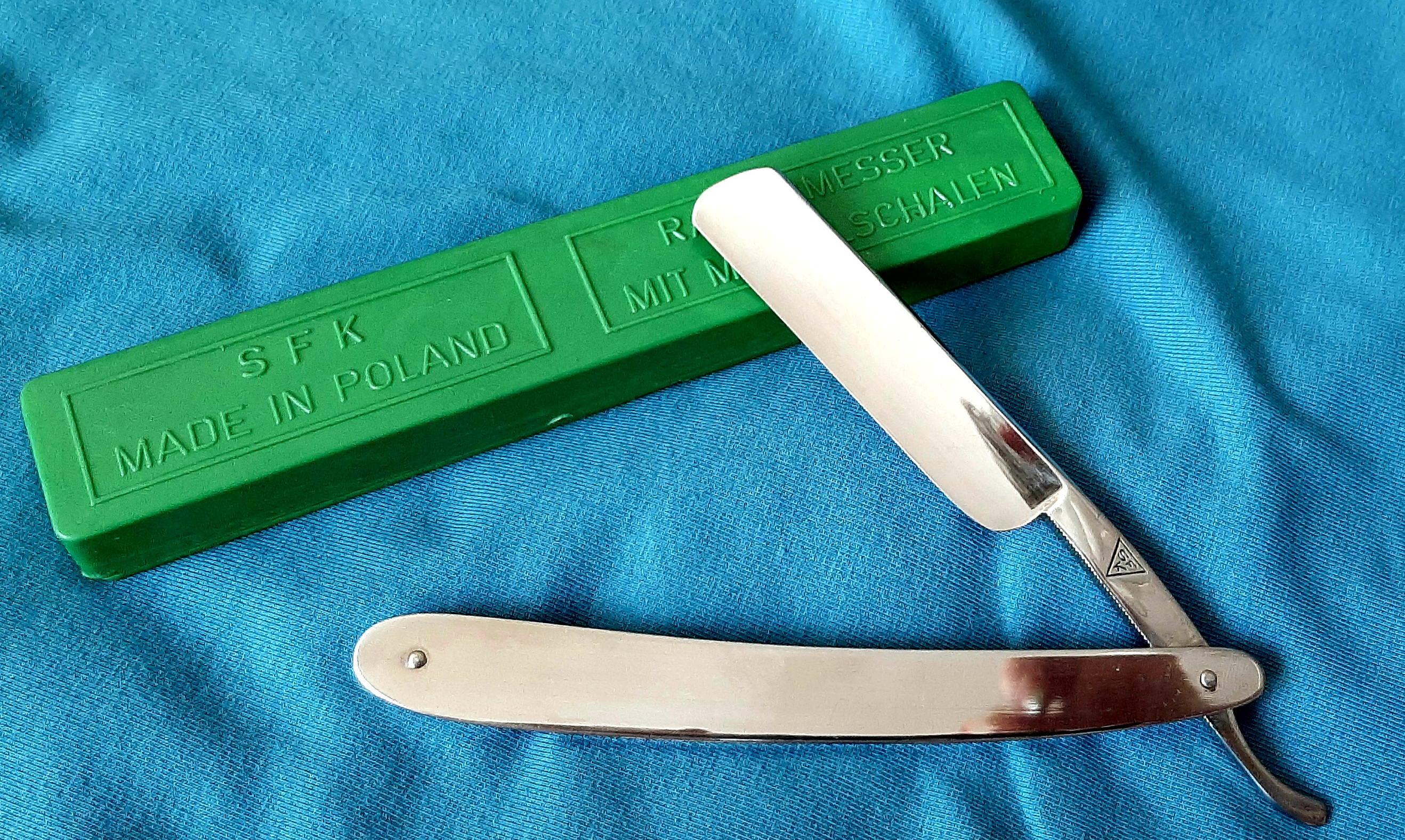 WAPIENICAМодель называется "Chirurgiczna". Бритвы этой польской фабрики (SFK) производились примерно в 1950-1990. Можно назвать из известных ещё парикмахерскую модель ( "Fryzjerska") - на фото топикстартера (буква F на эрле), а всего было 6 или 7 разновидностей (ещё помню - Популярная, Специальная, Биологическая (типа микротома) и модель "Висла") Примерно 1960-1985.