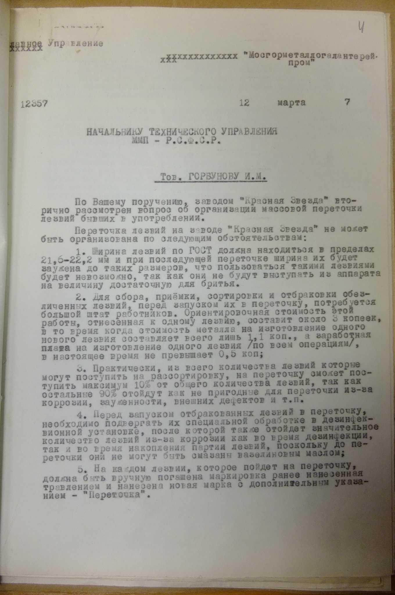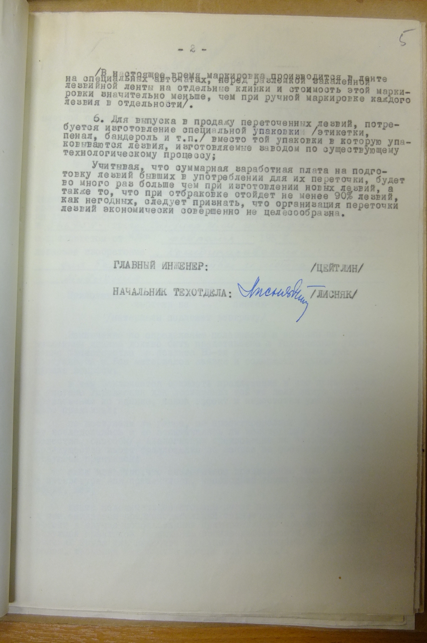 А княжеский дар им не нужен; Правдив и свободен их вещий язык И с волей небесною дружен. А. С. Пушкин. Песнь о вещем Олеге. Правка лезвий (видео)Официальное заключение о невозможность наладить массовую переточку лезвий на заводе Красная Звезда. 1957 год.