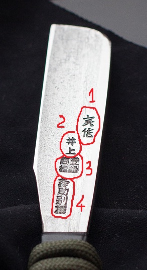 1.実作- Jissaku- "реальная работа" 2.井上- Inoue- "Иноуэ" (фамилия мастера) 井-"колодец", 上-" внизу, под, и т.д." ( на русский манер фамилия звучала бы почти "Подколодный" 3.登録商標- Tōroku shōhyō- "зарегистрированный товарный знак" . 4.藤助別撰- Tōsuke bessen- "Тооскэ "(Имя мастера) "специально изготовлено" Добавлено спустя 15 минут 45 секунд: Vitman, переименуй тему по имени производителя. Челябинские мужики настолько суровы, что правят бритву не на ремне, а на роже.