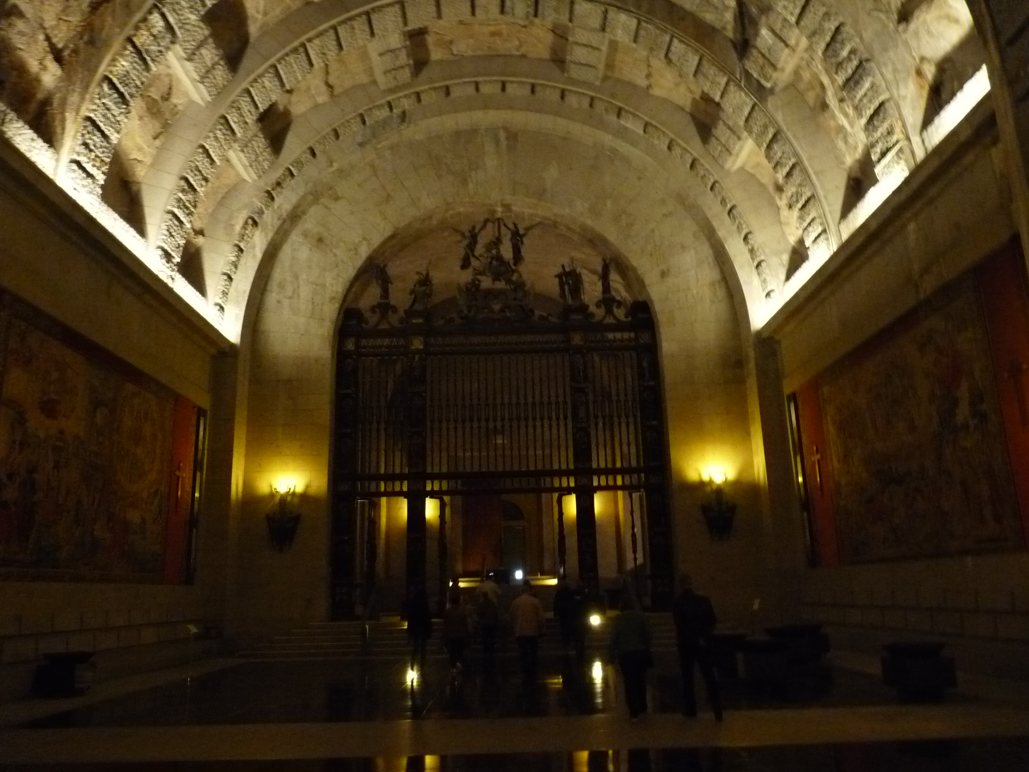 Генерал Франко, после предательства правительства республиканцев и ареста бывших бойцов и сочувствующих (тех кто выжил) заставил этих заключённых в течение 20 лет долбить в скале\горе здоровенный грот или пещеру, метров 200 длиной, куда собрал остатки всех погибших во время войны фашистов-фалангистов и там их захоронил (там в тупике есть ещё "крипты", куда пускают только родственников, как далеко они длятся -?).