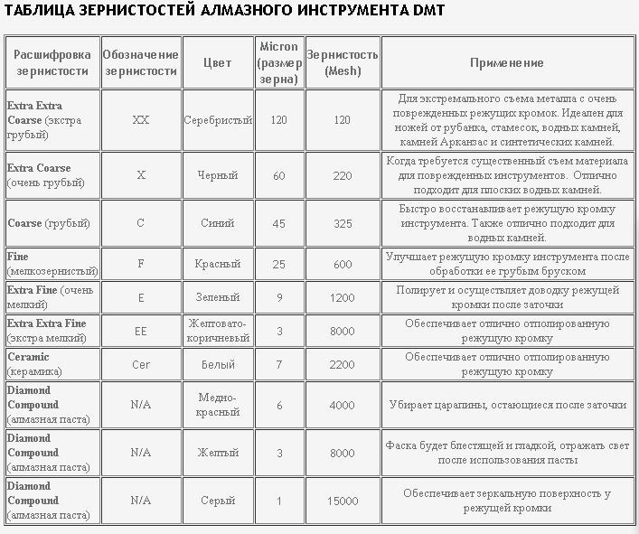 ТАБЛИЦА ЗЕРНИСТОСТЕЙ АЛМАЗНОГО ИНСТРУМЕНТА