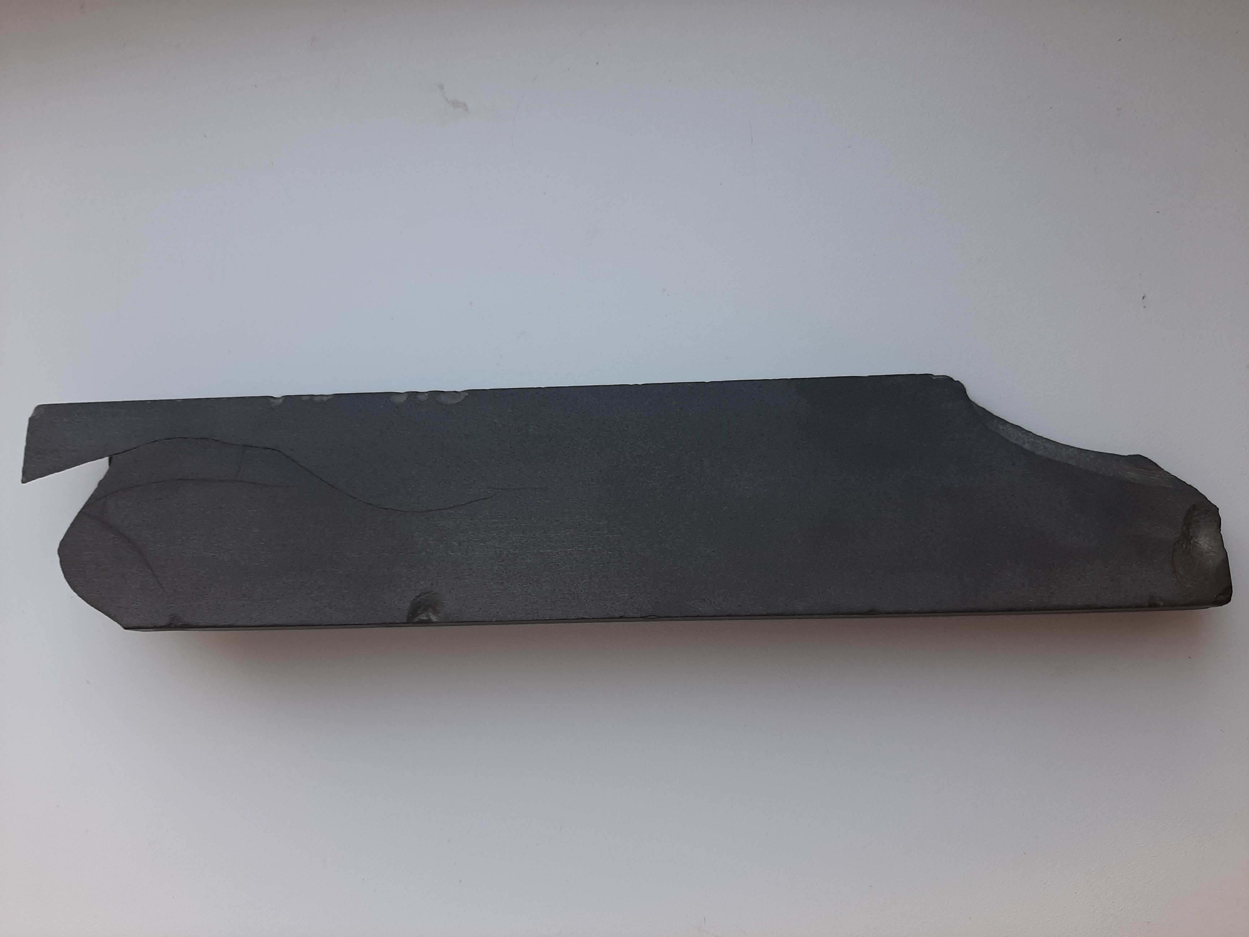 а то, что на нем тут (в этом случае у Харона) коричневые прожилки, то он и без таких прожилок такой был - монотонный темно-серый цвет - и таких камней было больше. Именно характерность трещин говорит за то, что это ближе к гуанси, а не что-то английское. И Харон сам ранее выложил фото (выше ссылка), как сыпется гуанси (надо же), и это подтверждение того, что это характерно именно для гуанси. Ну или что-то безымянно-аналогичное из того же Китая... Я был бы просто счастлив, если бы кто-нибудь показал аналогичную трещиноватость и склонность к такому роду сколам англосланцев, но на фото, как сделал это Харон, а не языком. PS теоретически блэк арк имеет более/менее похожую характерность излома, но вряд ли это он тут, ибо арки более прочны, даже со сколами, а у этого многочисленные сколы, говорящие за внутреннюю напряженность породы.