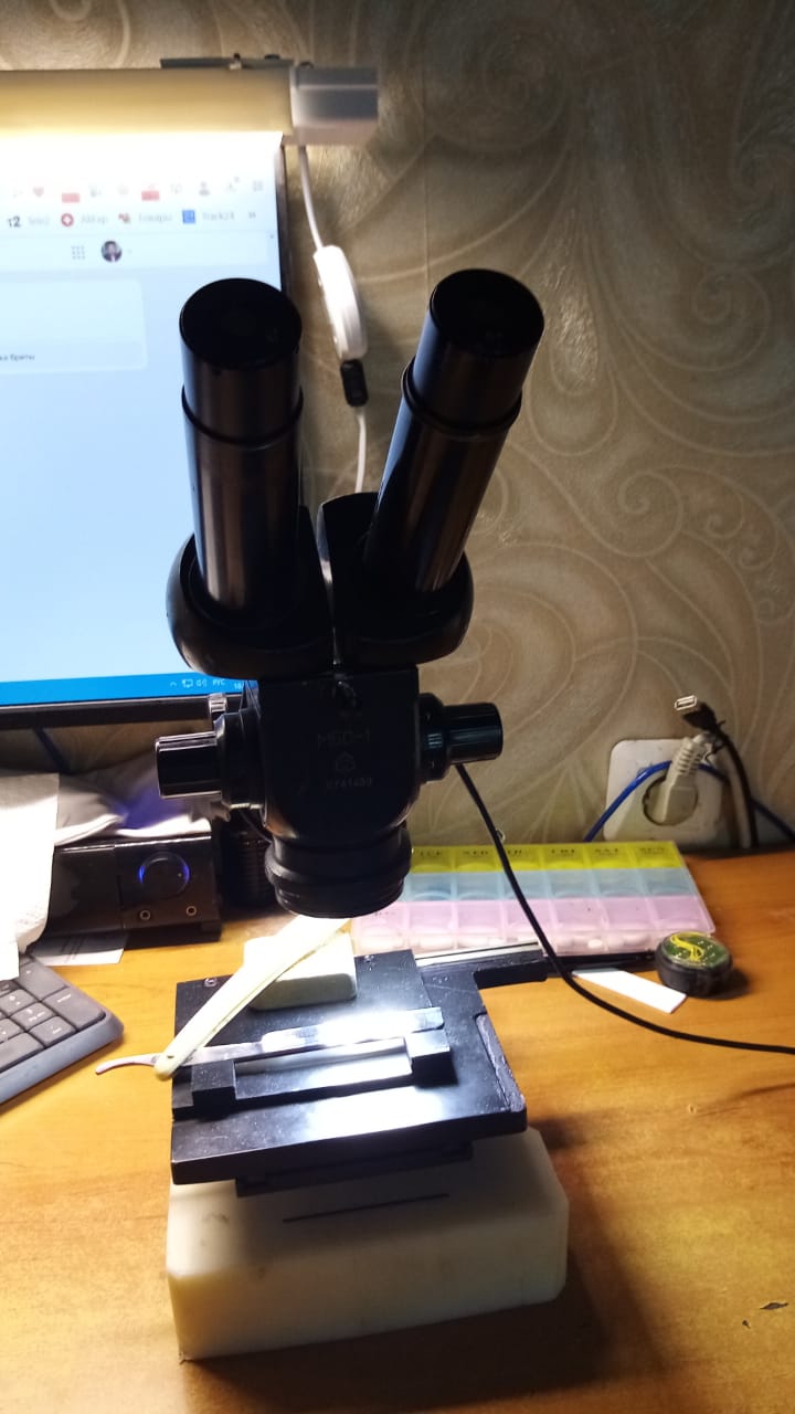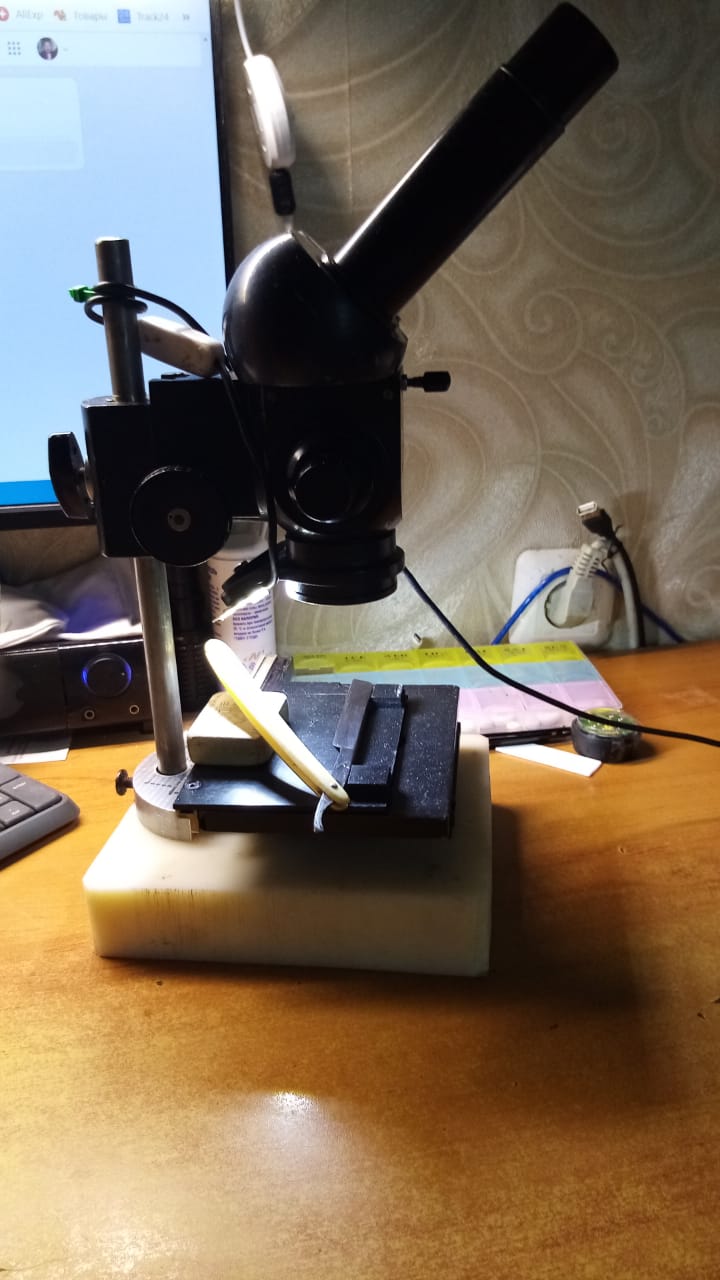Дело в том, что штатный набор объективов/окуляров дает увеличение х280 - х1600, что для бритвенных нужд лишковато. Поэтому штатный набор не использую. Достал редкий ныне школьный объектив х8 из СССР. Сейчас такие и не найти. Их просто не выпускают. То есть использую преднамеренно загрубленный дорогой прибор с неродным планарным объективом от простейшего микроскопа. Единственно, что нравится в БИОЛАМ, это очень продуманный предметный столик с препаратоводителем, позволяющий протянуть в поле зрения всё РК без перекладывания клинка. Но всё же решил разорится на нормальный прибор под свои нужды. Как говорится и на ёлку влезть и промежность цела. Приобрел биологический стереомикроскоп МБС-1 и отдельно столик от БИОЛАМ. Столик пришлось кастрировать по высоте на 32 мм. Иначе общая высота микроскопа была бы неприемлимой для комфортной работы сидя за усредненным рабочим столом высотой 70 см. Вот теперь моя душа довольна. И ёлка и промежность и крестик и трусы. Никаких противоречий. Стерео в огромном диапазоне х3,6 - х112 и плавная протяжка всей РК в поле зрения. Старый БИОЛАМ наверное буду продавать. Теперь он без нужды. 32 года активно мусолю харю клинковой бритвой