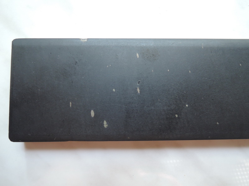 Купил где-то с год назад такой камень. Есть светлые вкрапления. Снизу был скол, возможно из-за того, что камень был в коробке и его от-туда выковыряли. Дает светло-серую суспензию. По ощущениям при заточке точно могу сказать что он тоньше 3000 карбида кремния. Подскажите шо за камень пожалуйста.