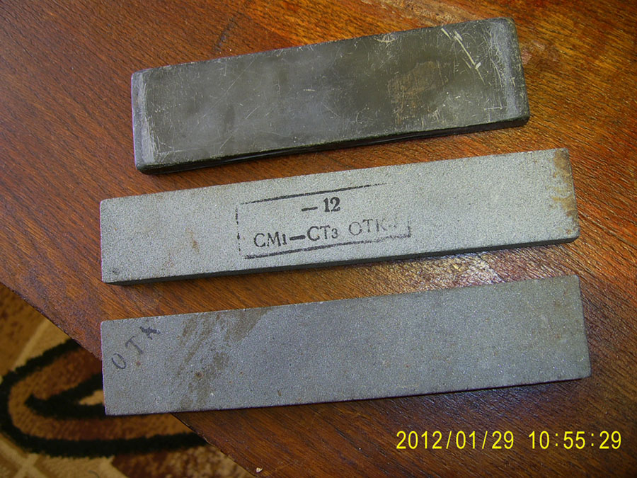 Давно читаю статьи Вашего форума, но только сегодня зарегистрировался. Потихоньку перехожу на опасную бритву, и вот хочу прикупить камни. Посмотрите, пожалуйста, на фото и скажите Ваше мнение. И по возможности во сколько Вы их можете оценить. Камни советские. Заранее Спасибо