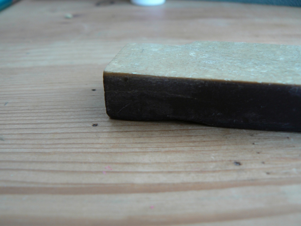 Re: Помогите определить каменьЖелтенький слой - желтый бельгиец (coticule), ценный камень весьма, может быть иной раз и быстрый и в то же время сверхтонкий, финишный. Но его осталось там в камне кот наплакал, а с учетом того, что камень нужно выровнять и довести поверхность - его там не будет вовсе.