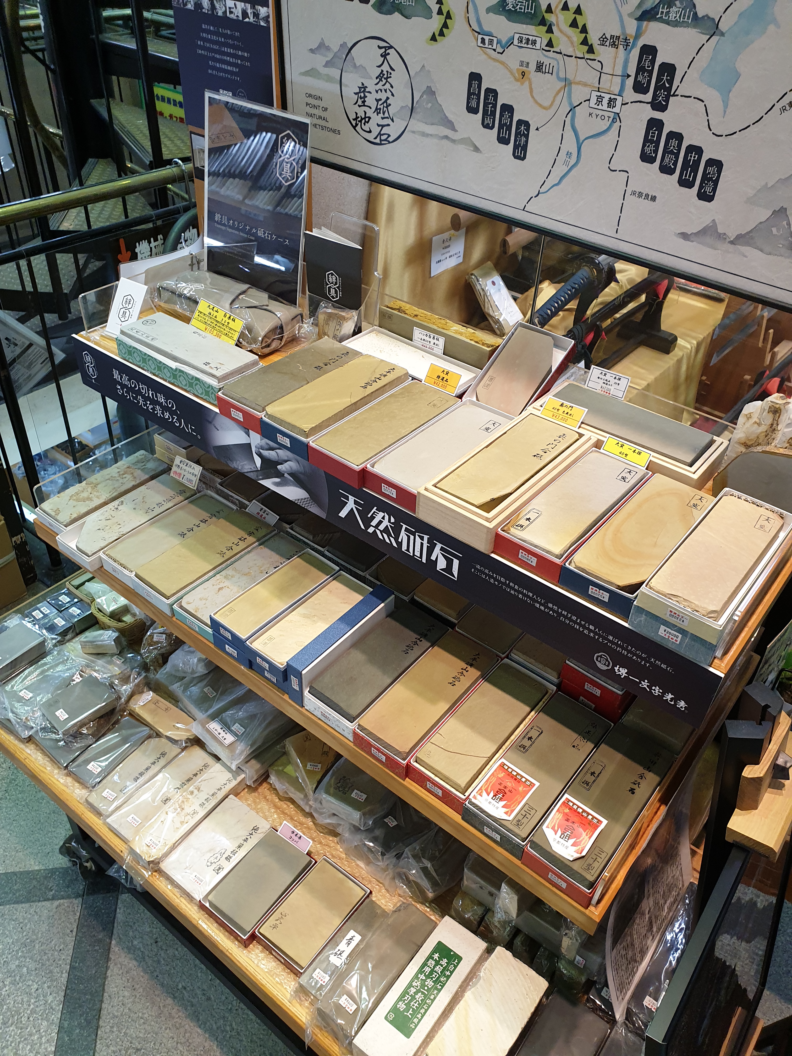 Точка продаж камней в Осаке, ЯпонияПобывал в Осаке, на пути попался неплохой магазин ножевой тематики, с некоторым выбором камней, натуралов и синтетики. Находится он в оживленном туристическо-торговом районе Дотомбори - Намба: