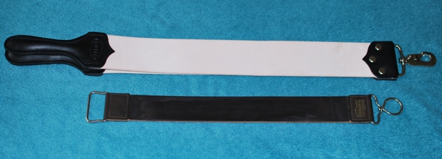 Re: Ремни Нейла Миллера (не путать с Тонни Миллером)Пришел ремень от Нейла Миллера 2,5 инча..Подпишусь под всем вышесказанным.Зделан очень добротно.Хлопок пустил под красный карандаш Dovo. Ремень с черной пастой, просто для сравнения размеров.Именно эта модель обошлась в 85 фунтей + 14 пересылка.