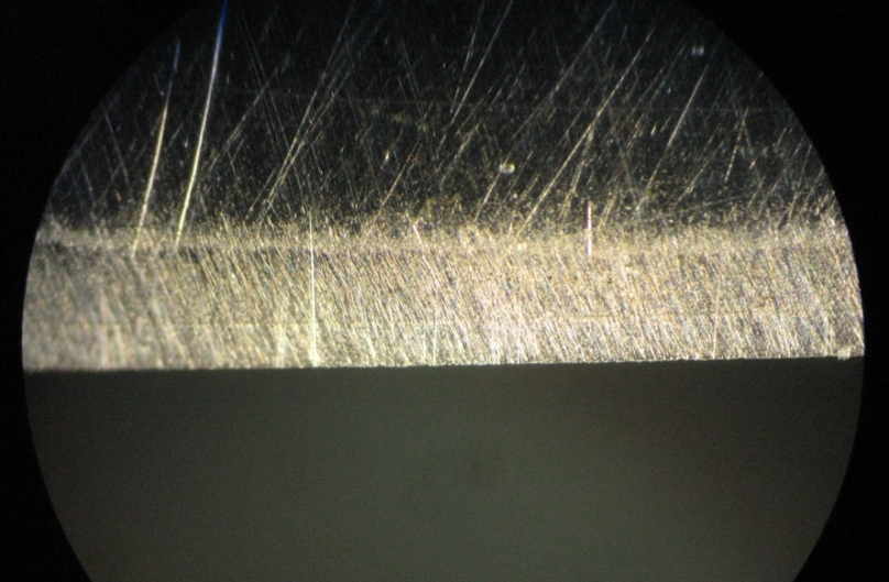 Вот и настало неизбежное - получил на исправление 2 бритвы от заточного Вартана - Эдуарда Седых. Ну как бритвы, у нас такие для реставрации продают. Без разрешения заказчиков не могу постить их бритвы, но поверьте на слово - бритвы даже не почищены. По заточке см. фото. Всё ясно без слов - уровень 6000грит. Вот вам и Хатахоси с Эшером. Это бельгИш-белИш в лучшем случае. Сколы ладно, мог наставить клиент, ремни не высокого качества были приобретены, но это мы поправим, кстати по ремням тоже надо будет пройтись, но вот царапины это точно не от ремня - это работа абразива, причем работа грубая. Тест на волос как и предполагали - зубцом. Характерное притормаживание, елозение по РК и распускание. Ни в одном месте РК двух бритв волос не распадался от соприкосновения, не срезал четко, а мохрил - результат видно на фото. Не удивительно что клиенты жаловались на дискомфорт и нечистое бритье. Бритва срубать должна, а не стругать. Так что какие бы камни вам не показали, мастерство не заменишь, а это только с опытом. Не покупайте без отзывов и не доверяйте не публичным продавцам. ЧТД. [attachment=0]эдуард седых 2.JPG[/attachment] [attachment=2]эдуард седых 3.JPG[/attachment] Комплексное решение заточки - подбор и подготовка к работе сетов на основе синтетики и/или натуралов, нагуры, притиры, мусаты и ремни для правки.
