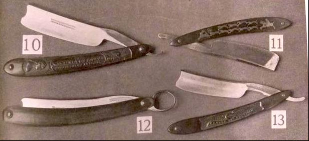 - 19. Дата 1845. Даты четырех американских бритв, 19, 20, 21 и 22, не могут быть определены с большой точностью, поскольку американские бритвы не всегда соответствовали шеффилдской моде соответствующего периода.