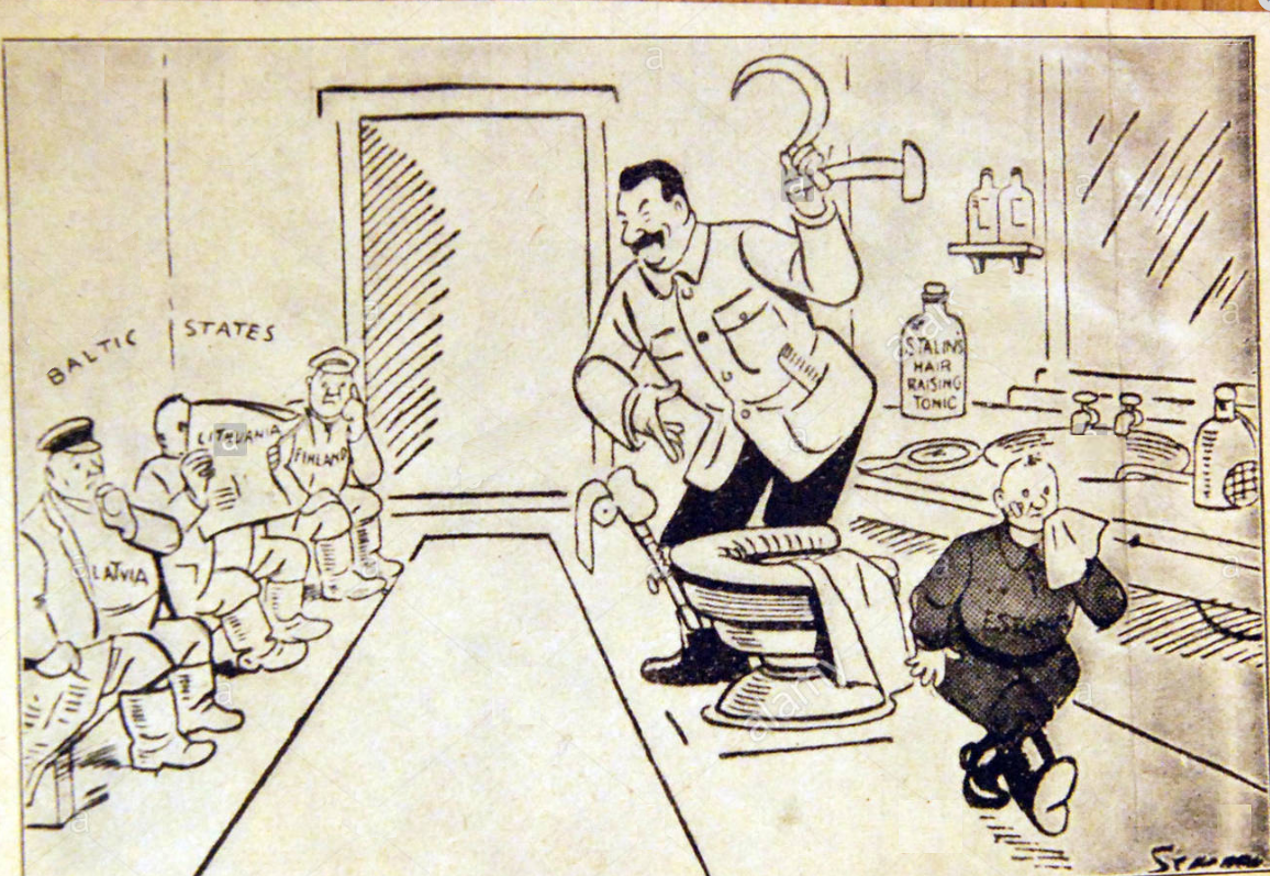 Опасная бритва в политических карикатурах и сатиреСталин бреет Прибалтику.