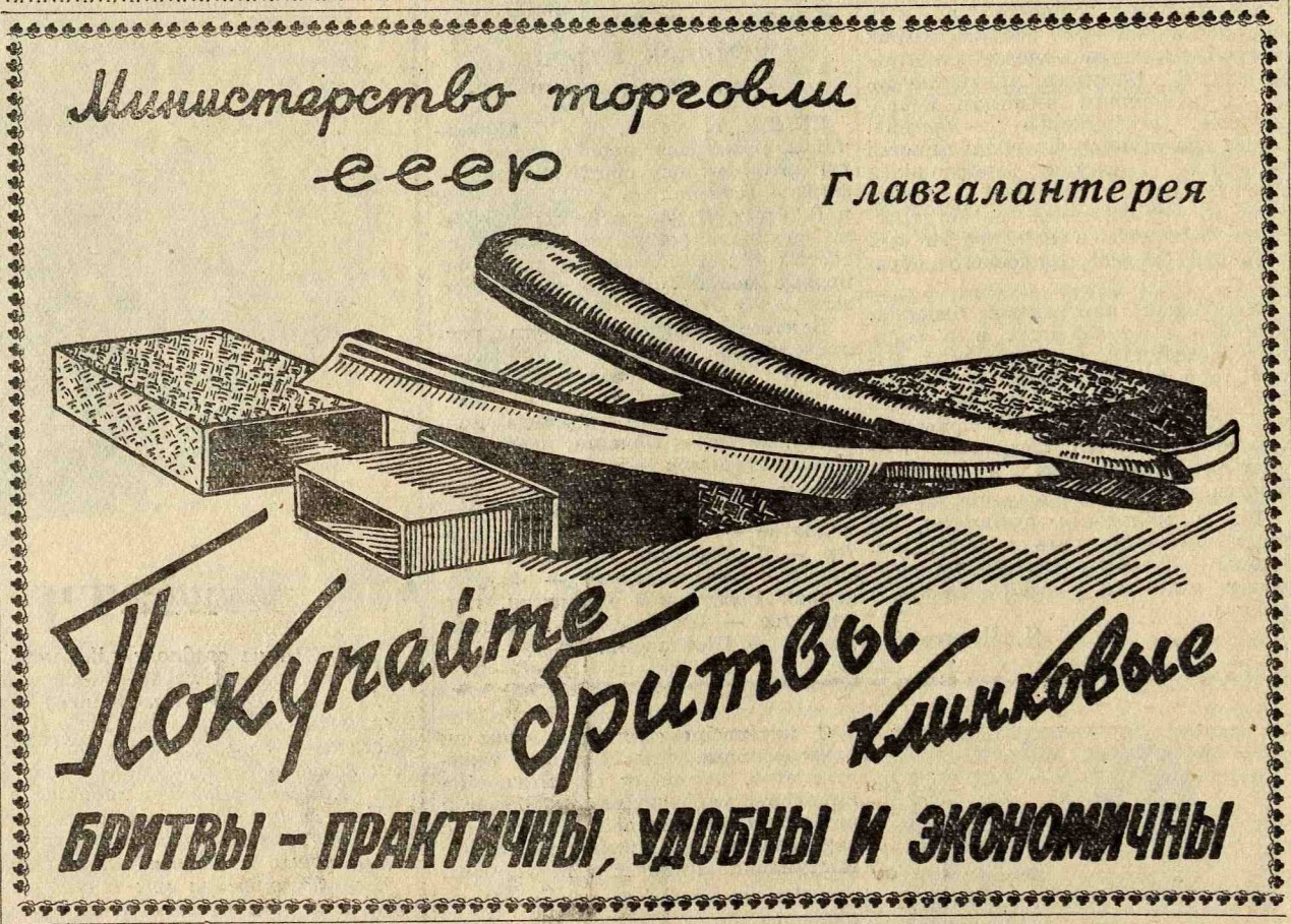 Клинковая бритва - практична, удобна, экономична. 1956 год