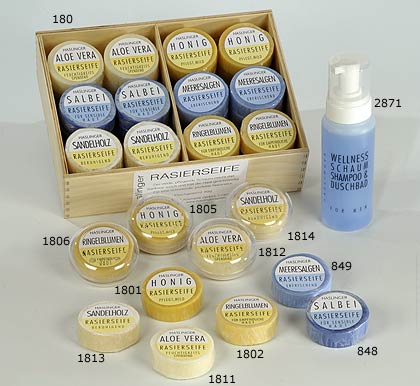 А теперь прогуляемся по Марияхильферштрассе, или Марийке, как по-простому называют ее русские жители Вены – основной торговой улице австрийской столицы, аналогу более всем известной Оксфорд-стрит в Лондоне. На всем ее немалом протяжении сплошные магазины, постоянный ажиотаж, и наверняка здесь найдется что-нибудь для ценителей и знатоков исследуемой нами темы. По адресу Марияхильферштрассе, 33 расположилось заведение Walter Weiss. Это обычный в общем-то магазин парикмахерских, брадобрейских и иных сопутствующих принадлежностей вроде натуральных шампуней и губок. Целых три острых бритвы от DOVO дополняют общую картину. Пожалуй, единственное, чем он примечателен – красивый деревянный интерьер в старом венском стиле и возможность приобрести еще одно оригинальное мыло для бритья австрийского производства. Мыловаренная мануфактура Haslinger предлагает довольно любопытный выбор – ароматы сандалового дерева, алоэ, кокоса, морских водорослей, меда, календулы, шалфея. Обилию натуральных компонентов мы обязаны в данном случае австрийскому инженеру и химику Георгу Хаслингеру. В 1949 году он приобрел мыловаренный завод, работавший с 1890 года. Хаслингер сразу отказался от использования сырья животного происхождения и посвятил всю жизнь исследованию полезных свойств растений, меда и лекарственных трав, и возможностей использовать все это в производстве косметических средств. Цены в Walter Weiss не отличаются демократизмом - 6.90 евро за кусочек весом 60 граммов. Если вас заинтересует это мыло, проще и выгоднее заказать его сразу полным комплектом в интернет-магазине или на ebay. Адрес магазина - Mariahilferstrasse 33, 1060 Wien. http://www.walterweiss.at" onclick="window.open(this.href);return false; Адрес мыловарни - http://www.haslingerseifen.at" onclick="window.open(this.href);return false;