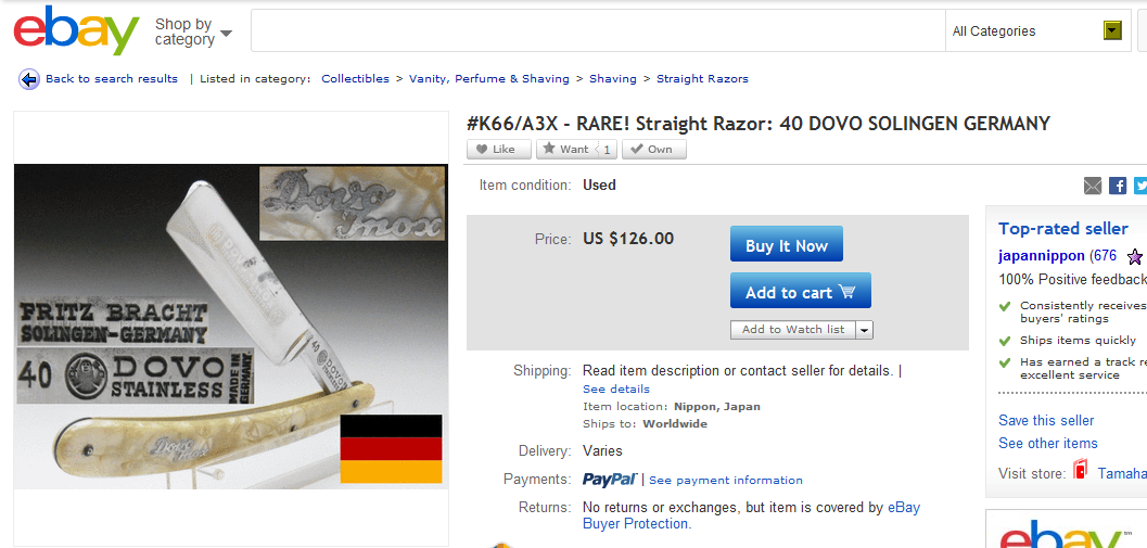 Не прошло и суток, как японец, внимательно читающий бритва.ру, исправил положение дел.  Теперь, его лот уже разводом можно не считать, ну разве только цена