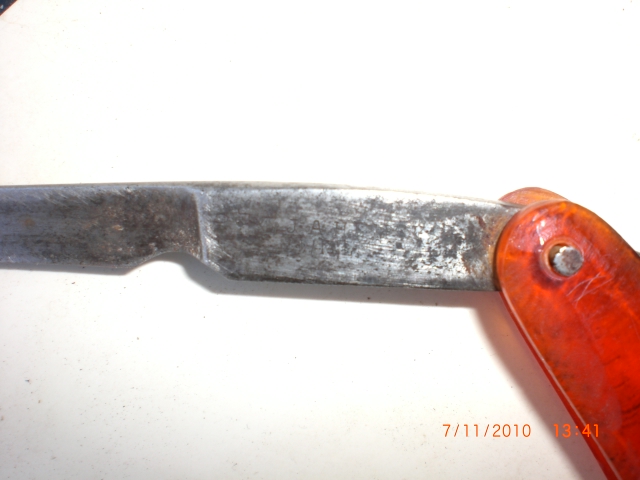 Лезвие: длинна 73мм, ширина 14мм. Хорошая углеродистая сталь, двойная заковка. Лезвие имеет небольшие шербатинки у головки и ближе к основанию, которые при тщательной отводке лезвия затянутся. Требуется отводка. Может использоваться по назначению.