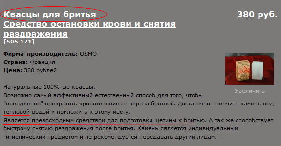 А ещё порадовало: "Является превосходным средством для подготовки щетины к бритью". Хотел бы я посмотреть...