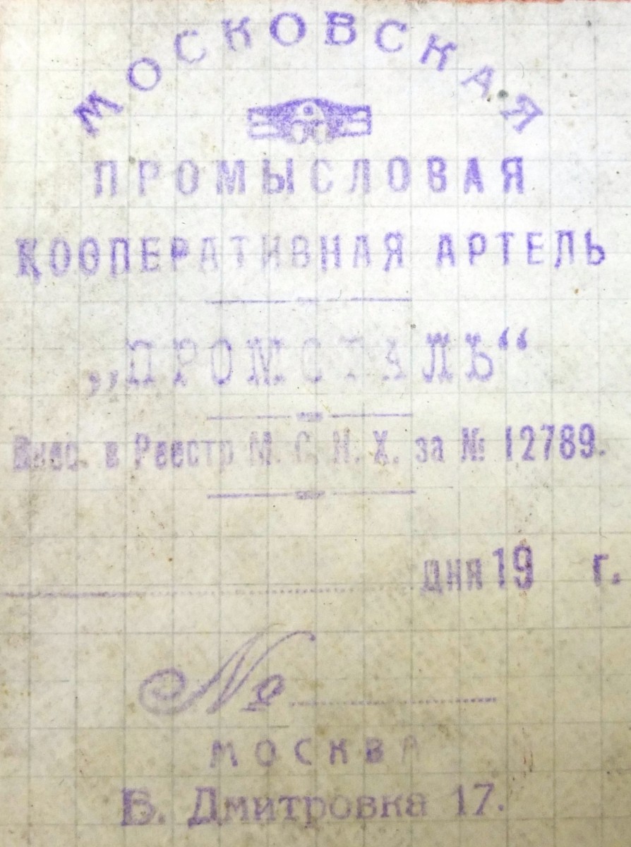 Артель Промсталь не попала ни в справочник "Фабрики и заводы московской области, ч1, Москва. 1931 год", ни в справочник "Вся Москва за 1930год". Когда и почему прекратила свою деятельность неизвестно, вероятно в 1930 году и померла.