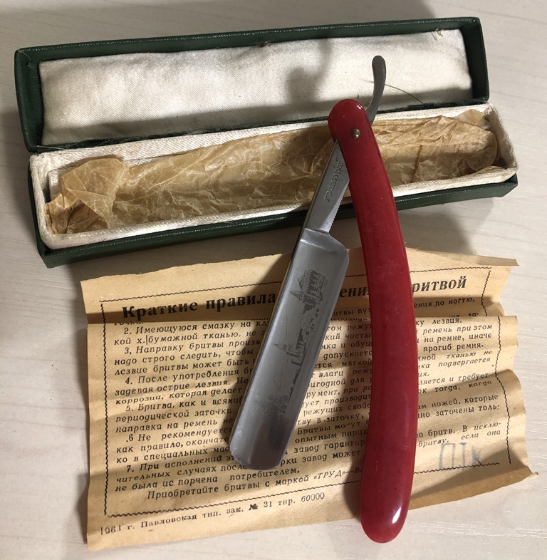 Дальнейшую историю завода "Труд" мы намеренно опускаем, так как производство опасных бритв после 1968 года было прекращено.