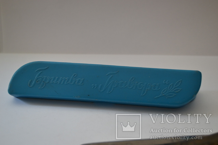 ЗТВ 51 г. Взял из интереса к прозрачной ручке, думал заводская. Но все таки по ходу самопал, но качественный, оргстекло, все обработано, подогнано. Футляр тоже самодел, но сделан хорошо, искус.кожей обит, закрывается идеально. Точилась не вандально, восстановлю ее. Кто то любил эту бритву, раз заморочился с ручкой и футляром