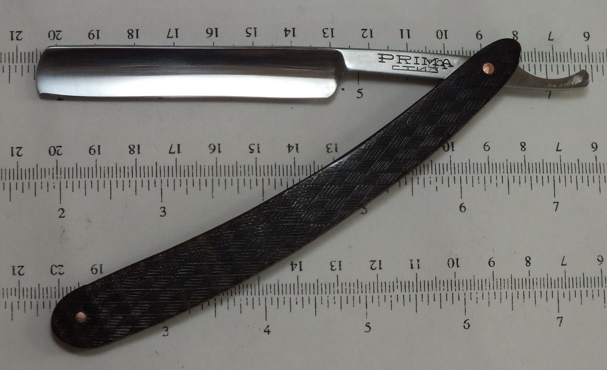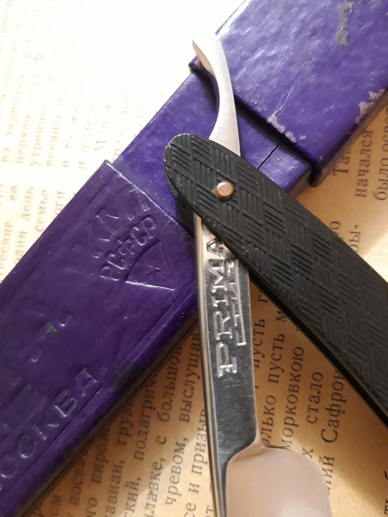 Бритва "Москва" с гравировкой на полотне появилась в 1946 или 1947 году. На фото видно и нестандартный ромб и принадлежность к ММП и отсутствие года на клейме бритвы.