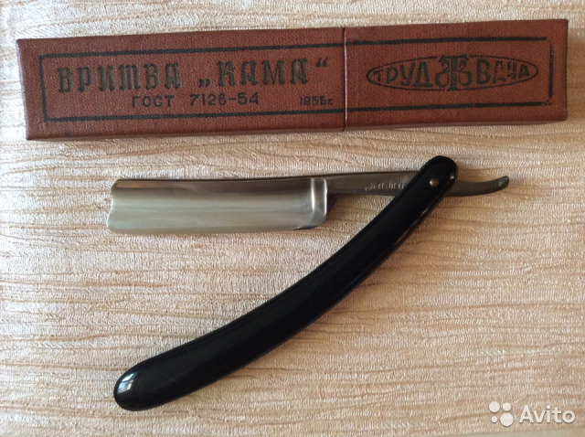 Если не нужны золотые надписи и сомнительный коробок, а только бритва с barber notch типа как "Подарок", то это ещё "Кама" 1956...1957гг (говорят есть и 1955г. но я такого года не имел).
