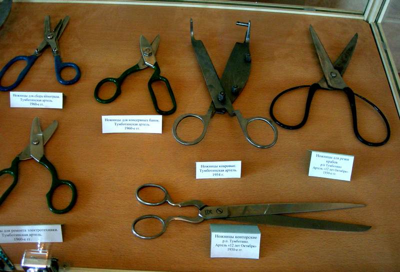 В тридцатые годы выпускались ножницы: простые, парикмахерские, мануфактурные, пяличные, фасонные, дамские, закройные, для стрижки овец, портновские, крабы, ножницы по металлу, ножи хлеборезные, резаки, вилки прессованные.