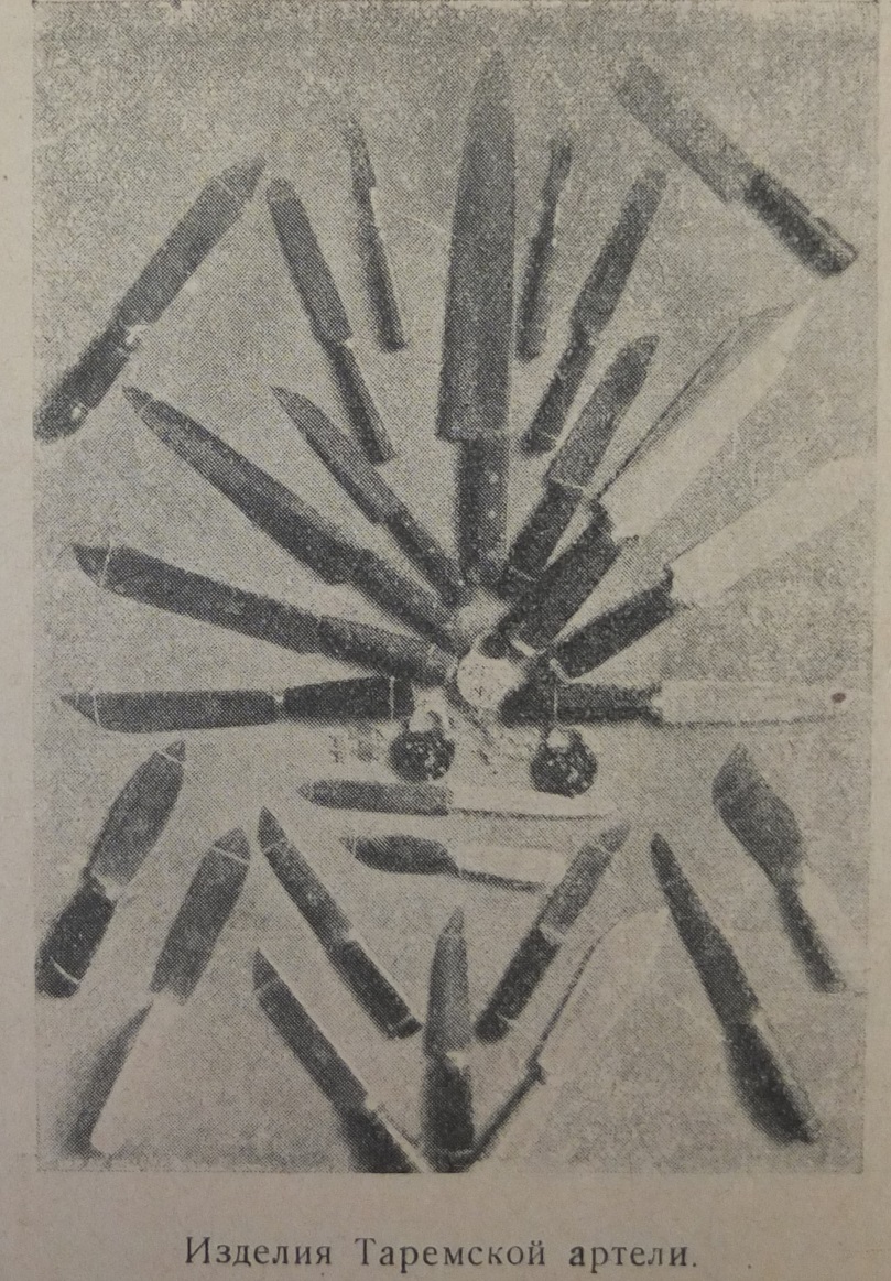 К концу 1925 года артель еще была не электрифицирована, не было механической ковки, ножи ковались вручную, не было шлифовальной мастерской, ножи шлифовали в деревне Хреновой, в пяти километрах, за Окой.