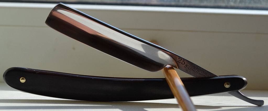 EXTRA SUPER-DIA 25 Япония, ширина 5/8, ручка-рог, заточена и готова к бритью. Сталь похоже шведская, видно и в заточке и в бритье. Отлично работает. продано EXTRA 25 Show Re: Продаётся от FransПолучил "Яхту", за 12 дней дошла. Начну испытывать, как щетина отрастет.