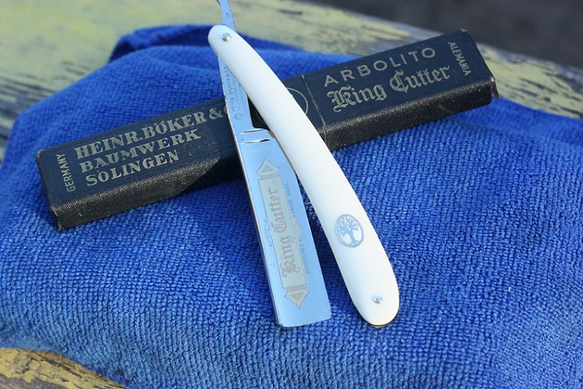 Re: Продаётся от KarangiHeinr.Boker & Co <King Cutter>. Бритва не пользованная, 6\8. Родной кофр. Хороший сохран. Есть очень маленькая цяточка вверху на лицевой стороне возле обуха, и внизу. Продано