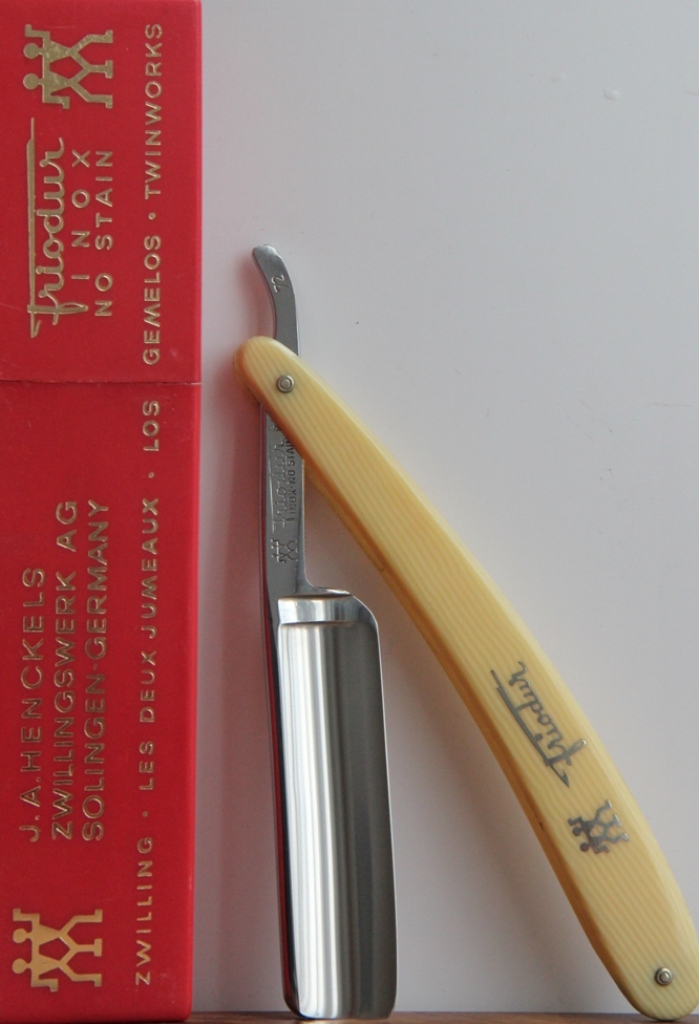 Продам кучку совершенно новых( из старых запасов) немецких HENCKELS FRIODUR Инфу по этому известнейшему производителю можно почитать здесь http://britva.ru/forum/viewtopic.php?f=27&t=564" onclick="window.open(this.href);return false; Все бритвы не пользованные, без царапин, дефектов или иных проблем. Состояние, как вчера с завода. Комплектуются родным пластиковым кейсом,пластиковым чехлом и бумажкой. Заводская заточка. Ничего не разбиралось и не ремонтировалось. Бритвы будут заточены и полностью подготовлены к пользованию. Цена за 1 бритву-250$ с доставкой. Список моделей и размеры. 1. Модель 72 1/2-3 штуки. 2 БРИТВЫ С АПЛИКАЦИЯМИ ПРОДАНЫ ШИрина полотна-21.5 мм Толщина обушка-6.2 мм Две бритвы с апликациями на полотне, одна-с чистым лезвием. 2.Модель72 Ширина полотна-21мм Толщина обушка-6 мм. 3. Модель 50 1/2 Ширина полотна-17 мм Толщина обушка-5мм 4. Модель 17 1/2 Ширина полотна-23 мм!! Толщина обушка-6.8 мм ОГРОМНЫЙ!!ПРОДАН При покупке двух и более бритв дарю очень хорошую бритву!! Spoiler Show