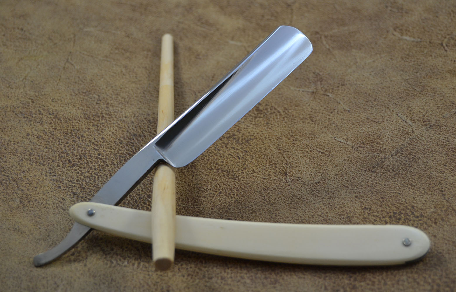 Вся в заводской полировке, рукоять из кости, имеет пару небольших скольчиков (видно на фото). Заточена, готова к бритью. Продано Spoiler Show
