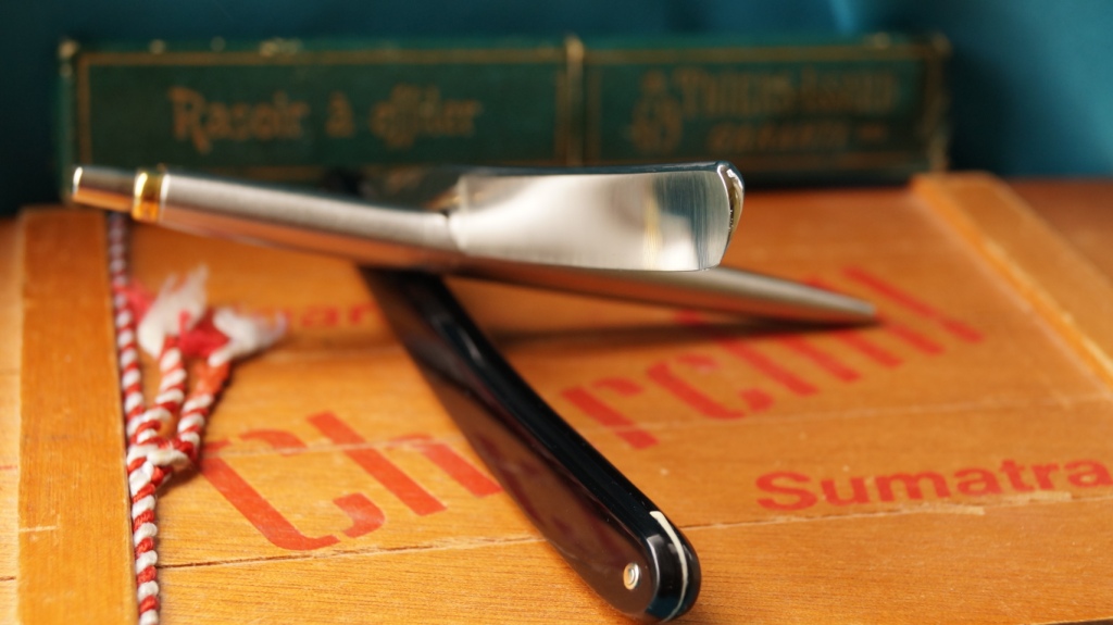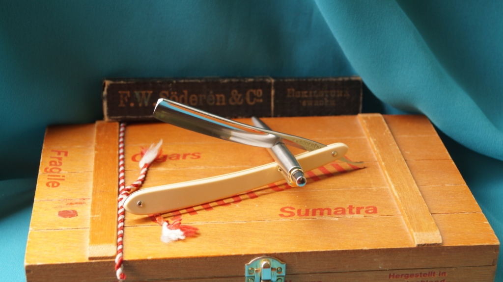 Бритва в эксплуатации не была, состояние отличное. Нет клейма производителя, видимо какой то заказ (может для парикмахерских или армии), но швед однозначно. Размер полотна чуть меньше 4/8 ( 12 мм), ручка из целлулоида. Бритва заточена и готова к бритью. Цена: снята с продажи, осталась в личном пользовании, великолепный рез 41-я Show