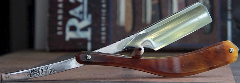 HOSHITOMBO 8000 MADE BY TOKYO RIKI CO. Ширина полотна лезвия-20 мм Толщина обушка-5.5 мм Бритва в очень хорошем состоянии для свои лет.Углеровка без дефектов. Ничего не разбиралось.Достаточно редкая и очень интересная бритва как в коллекцию, так и по прямому назначению. Бреет как и все японцы такой формы лезвия, просто великолепно. Показалось, что сталь достаточно твёрже, чем у своих сестёр, которые были у меня до этого. И это очень хорошо, т.к. заточку будет держать дольше. Геометрия полотна нормальная. Кромочка хоть и не узенькая, зато равномерная по всей длине. Такой размер кромки характерен для подобных бритв, так что всё нормально. Бритва заточена и полностью готова служить новому хозяину.Цена 150$ ПРОДАН Spoiler Show