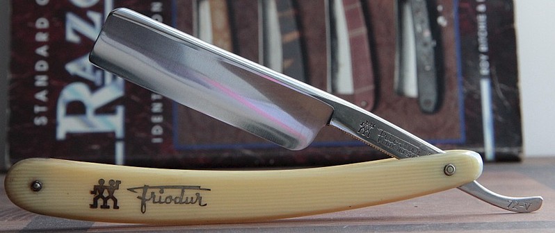 Тяжёлая бритва, в красивой перламутровой оправе.Ничего не разбиралось. Всё родное. Полотно в хорошем состоянии. Кромка чистая. Идеальная геометрия изготовления. Шикарно бреет. Проверено. Мягкое, чистое бритьё. Смело можно рекомендовать такую бритву в качестве первой для новичка.