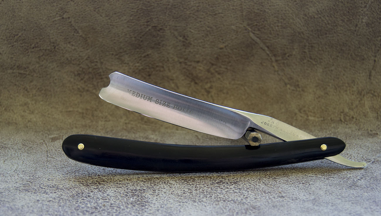 Английская классика 20-30 годы 19 века. Так называемый Stub-tail, бритва с коротким хвостовиком. Геометрия и состояние бритвы на высоте, очень сложно найти бритву этих лет в таком состоянии. Ко мне попала в родной коробке, завернутая в промасленную бумажку, скорее всего так и хранилась долгие годы, чем и можно объяснить замечательную сохранность стали, родная роговая рукоять так же в хорошем состоянии. Забыл сделать фото коробки, поэтом сделаю по запросу. Бритва заточена и готова к бритью. Продано Spoiler Show