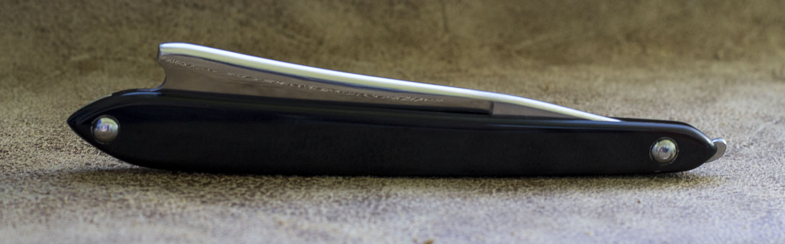 Отличный французский фреймбэк. Ширина немного не дотянула до 6/8, в самом широком месте 18.5 мм. Родная роговая рукоять, с костяным клинышком, бритва заточена и готова к бритью. Продано. Spoiler Show