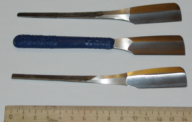 Решил бритвами распродаться. А то что то зарос Если что интересует то пишите, наверняка что нибудь подберу. Есть и недорогие. Бритвы будут разных типов. Принципиально будут реставрированные/т.нингованные. Будут NOS, будут просто бритвы, будут бритвы с которыми мне лень возится но они в очень хорошем сохране - типа продажа как есть не доррого. Разом все отфоткать очень трудно, так как я еще и камнями занимаюсь и фоткать их доводя не меньший труд. Итак продает 3 бритвы японских камисори. Состояние NOS никогда мии никто не брился. Минимальные следы хранения. Минимальные дефекты на РК за десятилетия хранения. По желанию заточу (но состояние NOS я бы для себя сам предпочел заточить а не покупать заточенную) Описывать бритвы не буду - все одного качественного уровня. Одного периода примерно. Цена 7000 за каждую Добавлено спустя 31 минуту 34 секунды: Вынесу отдельным постом. Так как уж больно вещь прелестная, чтобы не затерялась Вещь из разряда - такая есть только у меня и у Майкла Джексона Попался Тюрингец типа Эшер. 10 дюймов. Но слоистость не параллельно плоскости рабочей а по диагонали тела. размеры были тюрингские. Сочетание слоев светло зеленый/ темно зеленый не перепутать ни с чем. Но твердость в них по верхнему цвету во всех (т.е. обычно светло зеленый мягче чем темно зеленый - разная глубина залегания). И народ в общем требует - даешь дешевых Эшеров! (тлетворное влияние Эдуарда Седых Периодически обращаются и требуют бельгишей не уже чем 50 мм и эшеров не меньше 50 а платить даже треть рыночной стоимости не готовы Пришлось идти на поводу у рынка. Сделал 4 спарки 2 спарки Эшер/ черный антикварный английский сланец. Размеры 123х42-43х15 Цена 9000 рублей Цена обусловлена ценой Эшера - условно 10 дюймов 500 долларов поделили на 4 камня получили 125 долларов. Плюс сланцы на склейку (сначала думал с гуанси склеить типа подешевле но потом подумал что совсем моветон) 2 спарки Эшер/ японский натуральный камень (судя по всему томае асаги) Японец покупался в Японии как камень из парикмахерского салона. Камень из района Киото. Камень иел выработку характерную для заточки ножниц. Оттестировать его не успел. Но твердость не пятерка. Скорее всего 4 так что он скорее предфиниш. К нему дам томонагурку. Ну и по желанию найду томонагурку под черный сланец. Размеры 121х41-39х17 Цена 9000 Как видно оригинальный камень Эшер шел небольшим клином (судя по всему выработку или скол выводил предыдущий владелец) Экономил каждый миллиметр толщины, длинны и ширины. Так что предпочел подложку подогнать по размеру Эшера и не выравнивать в плоскопаралель. Камни вполне себе удобного бритвенного размера. Будут идеальным подарком себе любимому на новый год Ну и чтобы не было мучительно жадно при покупке - ближайшее что сможете эшерное купить по деньгам это 5 дюймовик шириной дюйм или дюйм с осьмушкой, т.е. 125х28 мм и это будет стоить никак не меньше 100 долларов. Т.е. ширина дюйм с тремя четвертями начинается только на дорогих и длинных камнях. Ну а не будут брать оставлю в коллекцию Будут отдельно не дорого обрезки от японского камня с которым склеен Эшер. размер будет вполне бритвенный типа 130х30х8 цена 2000 рублей. Доводить и фоткать сил нет пока никаких - меня эти спарки уморили капитально - резать их пипец как страшно по цене. Потому японца резал с запасом по 5 мм на сторону а потом ручками шлифовал лишнее. На 4 сп