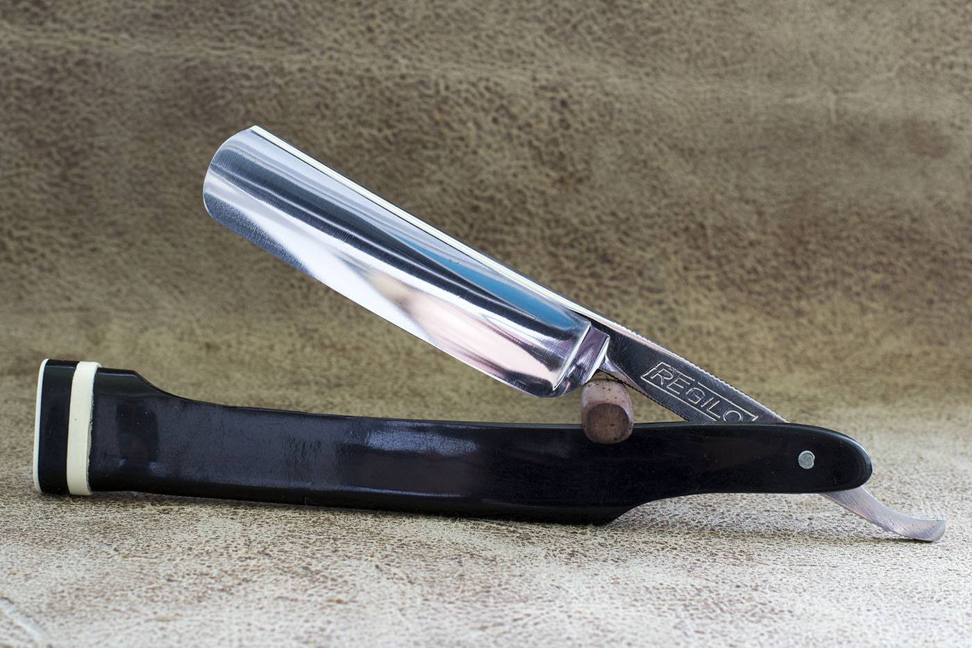 Немецкая походная бритва Regilo и ремень для правки из итальянской конской кожи растительного дубления. Бритва в состоянии NOS. Практически не имеет следов времени. С бритвой ничего не делал, лишь протер полиролью. Заточка заводская, будет заточена мной перед отправкой. Геометрия идеальная, походный футляр и ручка не накладывают каких либо ограничений, бритва так же хорошо сидит в руке как и обычная. Ремень гладкий, без какого либо ворса на поверхности, отлично правит бритвы, всесторонне мной протестирован. Верхний слой кордована потемнел в процессе обработки, это считается абсолютно нормальным и даже правильным, эта кожа темнеет в течении небольшого промежутка времени, а обработка поверхности этот процесс ускорила. Размер 600*60*3-4 мм. Резерв. REGILO Show ремень Show