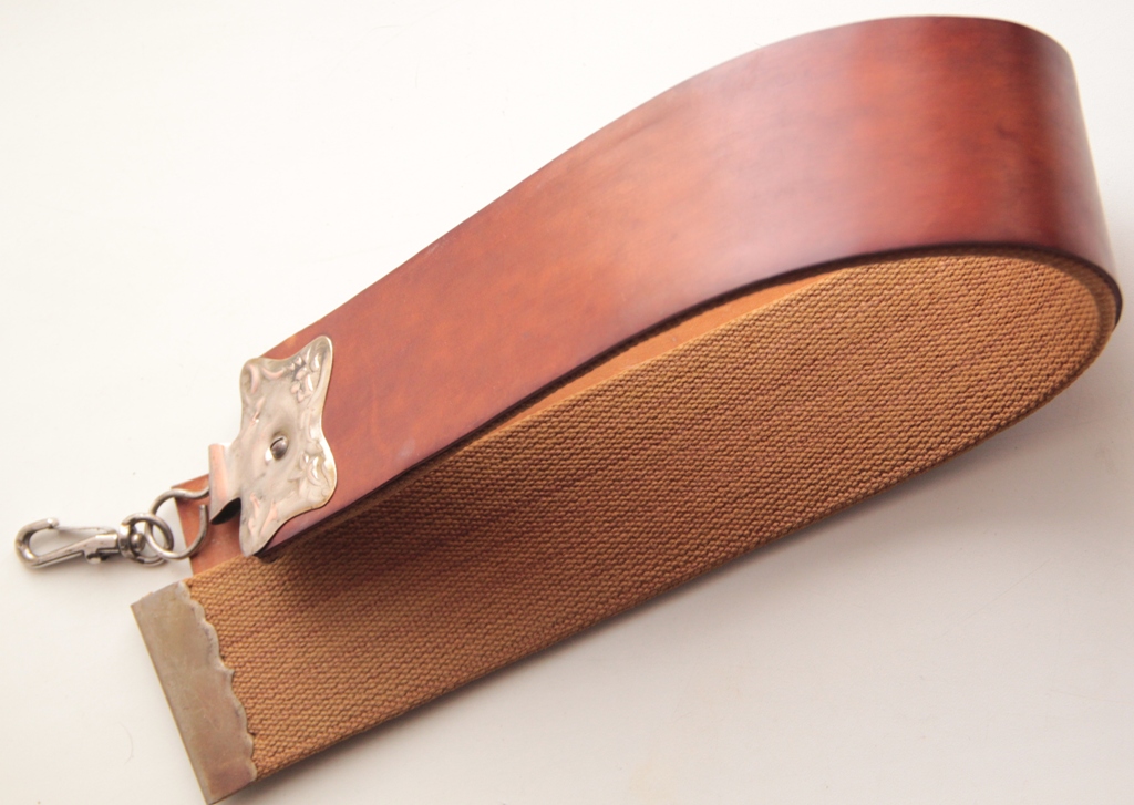 Ничего с ремнём не делал: не шлифовал шкурками и не полировал. Единственно что, очистил поверхность ремня пеной для кожи и всё. Вторая часть стропы-льняной холст-также, в прекрасном состоянии. Его не стирал и ничего с ним не делал.