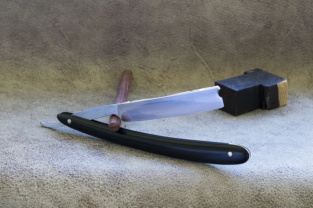 Современная опасная бритва от одного из немногих старых производителей бритв, продолжающих работать по сей день. На полотне выполнено воронение, ширина 5/8. Геометрия полотна в порядке, сталь произвела достаточно хорошее впечатление, думаю что бритва произведена до 2010 года, хорошее состояние. Бритва заточена без изоленты на обухе и готова к бритью. Рекомендую новичкам в качестве первой бритвы. Воронение является прекрасной защитой от коррозии. Продано DOVO Show