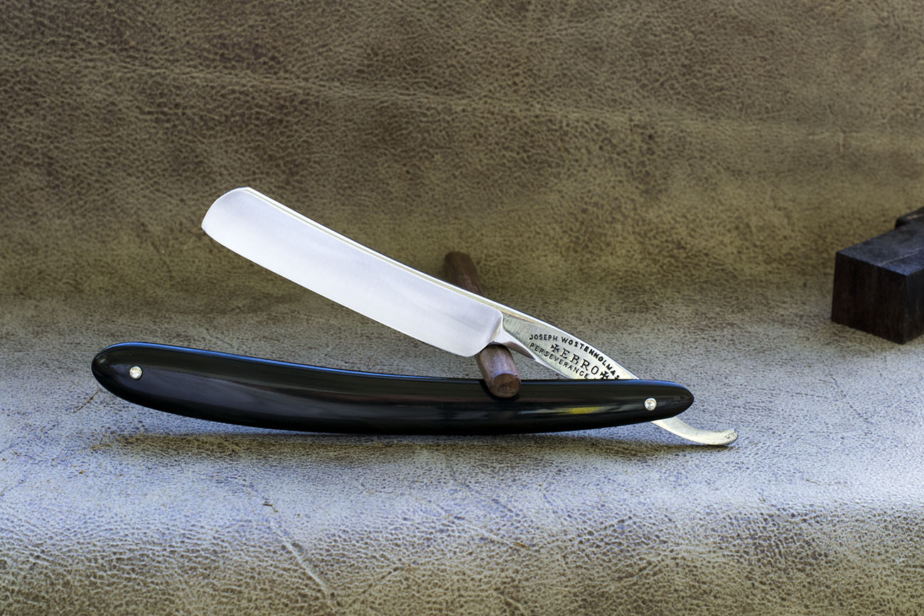 Бритва от Джозефа Востенхольма торговой марки Ebro. Произведена в середине 19 века в г. Шеффилд, Англия. Как большинство английских битв этого периода сделана из замечательной тигельной английской углеродки, которая легко точится и долго сохраняет свою остроту, давая мягкое комфортное бритье. Бритва получила новую рукоять из рога буйвола, сохранены родные шайбы. Имеет прекрасную геометрию и очень удобную форму эрля, подойдет как для бритья, так и для окантовки. Бритва заточена и готова к бритью. Продано Joseph Show