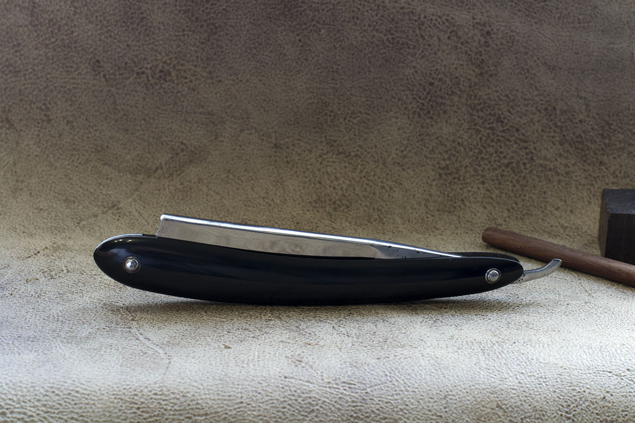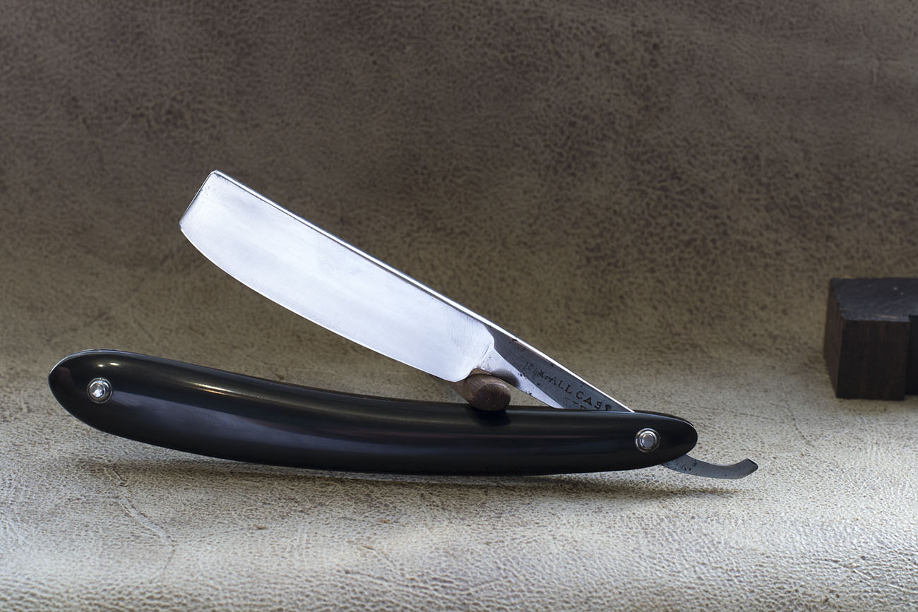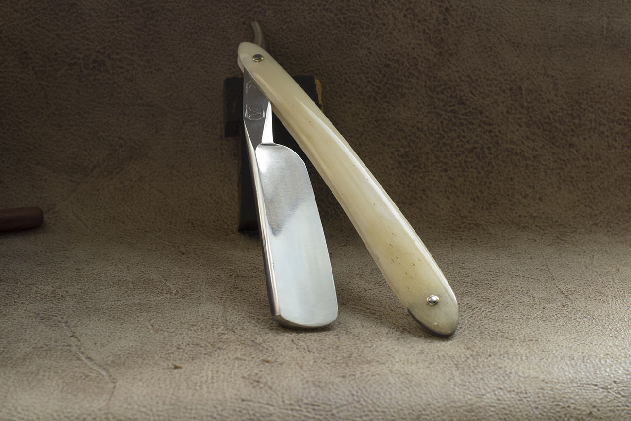 Английская бритва от известного производителя, только известен он не по опасным бритвам а по другим изделиям стальной промышленности, таким как безопасные бритвы, ножи, карманные ножи и прочая полезная в хозяйстве стальная мелочь. Бритвы весьма удачны в плане геометрии и стали – хорошо точатся, имеют довольно узкую и ровную кромку, данный экземпляр так же снабжен рукоятью из слоновой кости, ширина полотна 20 мм, бритва имеет отчетливо видную вогнутость со ступенькой, так называемый bellied ground но по сути бритва почти не отличима от таких же экземпляров с простой полной вогнутостью. Бритва была заточена мной впервые и никогда не была в использовании. Продано Lockwood Show