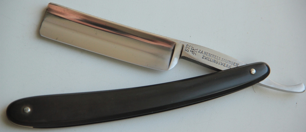 Ширина полотна-20 мм Толщина обушка-6 мм Полная вогнутость. Углеродистая сталь. Середина 20-го века. Историю этой легендарной фирмы можно почитать тут http://britva.ru/forum/viewtopic.php?f=27&t=564&start=0" onclick="window.open(this.href);return false; Или у Манаха http://www.strazors.com/index.php?id=16 ... g_solingen_" onclick="window.open(this.href);return false; Бритва не была в пользовании и имеет заводскую заточку. Ничего не разбиралось и не ремонтировалось.Сталь(за исключением нескольких некритичных точек) и кромка чистые, без видимых дефектов.Идеальная геометрия : кромочка равномерна по всей длине и еле заметна.Красивый рисунок обушка. Неродная коробочка в комплекте. После продажи бритва будет заточена, доведена до комфортного бритья и по желанию протестирована лично, хотя что тут тестировать, итак все понятно, что бритва отличная, в прекрасном состоянии и с отличной сталью. Мне сейчас не часто попадаются непользованные Хенки именно из углеродки, так что не пропустите. Цена-11500 с заточкой и доставкой.ПРОДАН Внимание! Важная информация! Spoiler Show