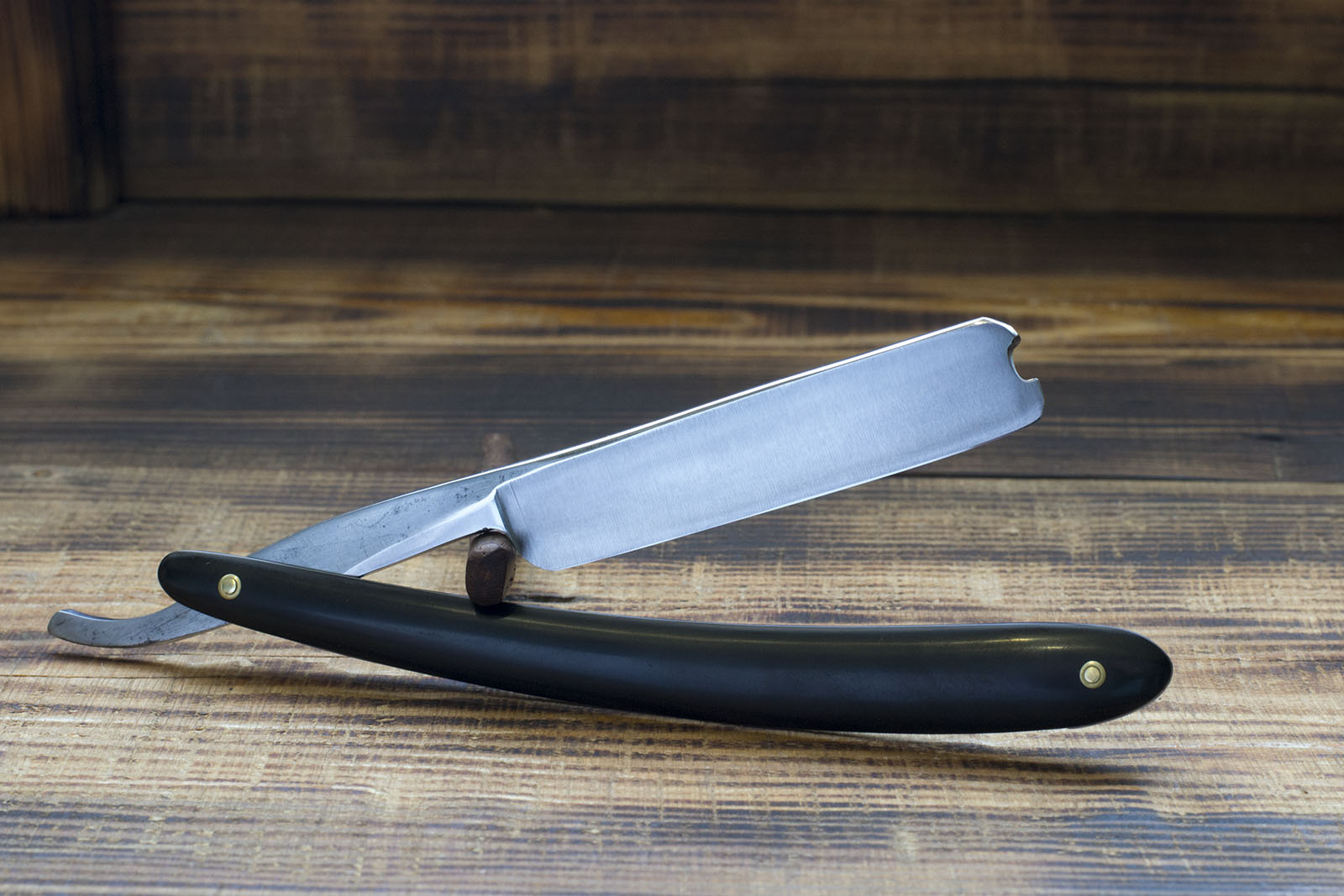 Французский клин, конца 19 - начала 20 века марки Vorax судя повсему, принадлежавшей некоему Planche Rémy et Jean Baptiste. Тем не менее я имею стойкое убеждение, что данная бритва выпущена силами Eugéne Rameau, на его фабрике Rameau Sens 89, у меня нет прямых доказательств , однако материалы рукояти, сталь и формы полотен бритв Vorax полностью идентичны некоторым можделям Rameau, кроме того эти бритвы зачастую можно купить вместе из одних источников, так же имел несколько бритв Vorax, снабженных фирменными чехлами Rameau, этих фактов было достаточно для укрепления моих убеждений насчет происхождения бритв Vorax.Данный экземпляр представляет собой очень приятный клин, шириной 18.8 мм, снабженный новой роговой рукоятью, геометрия полотна находится в норме, сталь вызывает лишь положительные эмоции. Бритва заточена и готова к бритью, рекомендую новичкам и лицам желающим ознакомиться с французской классической бритвой. Продано Vorax Show