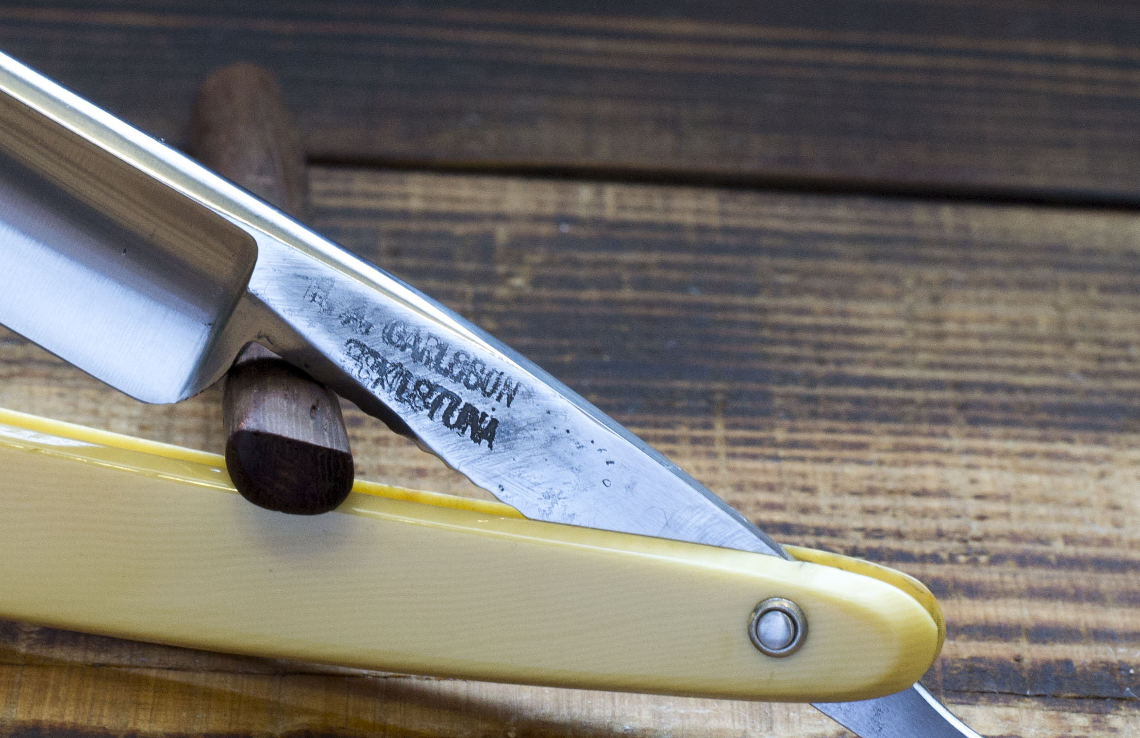 В настоящее время, когда предложение на антикварные шведские бритвы скудеет в геометрической прогрессии, мне удалось найти белого кита в мире опасных бритв - E. A. Carlsson. Eskistuna. Швеция. Очевидно что производство было очень мелким, экземпляров выпущено не много и по сети не осталось никакой информации кроме 1-2 фотографий похожих экземпляров. Тем не менее, несмотря на редкость и некоторую неряшливость в производстве - размытое клеймо, полученное травлением, бритва вызывает у меня очень приятные эмоции - изготовлена из качественной шведской углеродки, имеет массивный обух и тонкую, почти равномерную кромку. Рукоять изготовлена из целлулоида, ширина полотна 16 мм., бритва заточена и готова к бритью. Прекрасно подойдет для новичка или для страстного коллекционера опасных бритв. Продано Carlsson Show