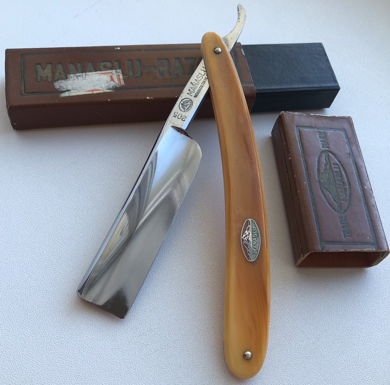 А мы продолжим.... Непользованная японская бритва MANASLU 205 от компании NICHIRI CO.TOKYO.JAPAN Ширина полотна-21 мм Толщина обушка-6.3 мм Полная вогнутость. Высококачественная углеродистая серебряная сталь Ясуки-Y.SS2.H (Yasuki Speciality Steel)от компании Hitachi.Shirogami White Steel (#2)-Широгами-Белая бумага. Примерно-50-70-е года производства. Немного информации тут https://historyrazors.wordpress.com/201 ... ichiri-co/ Бритва в прекрасном и непользованном состоянии. Не разбиралась и не ремонтировалась.Родная шлифовка и полировка.Идеальное состояние клинка, без видимых дефектов и царапин.Кромочка равномерна по всей длине и еле заметна.За счет своего толстого обушка бритва достаточно тяжелая.Отличная, "поющая" и "звенящая" углеродка способна обеспечить комфортное и мягкое бритьё.Ничего с бритвой не делал, дабы оставить старинный и антикварный вид . Не пропустите довольно редкую и красивую бритву, в таком состоянии, с одной из лучших и удачных сталей на клинке.Заточена и готова к бритью. Цена-12500 р с доставкой ПРОДАН Внимание! Важная информация! Spoiler Show