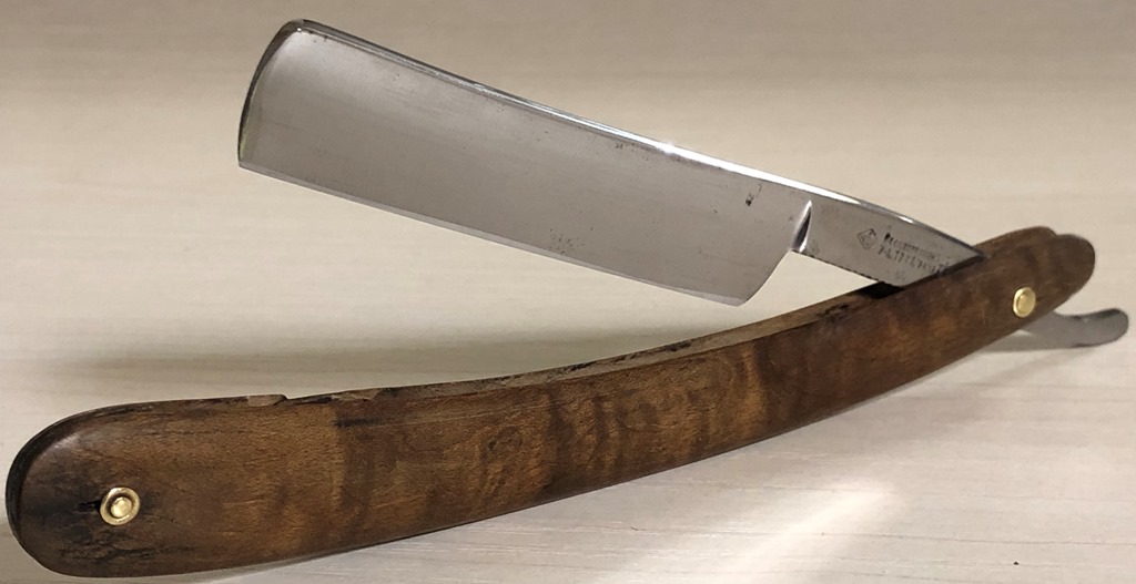 Ширина полотна-17.5 мм Толщина обушка-4.5 мм Форма лезвия-полная вогнутость. Углеродистая сталь. Бритва непользованная, но пришлось разобрать и немного освежить полотно от патины. Пины поменял на немецкие втулки, с добавлением внутренних шайб, для порядка.Сталь чистая, без видимых дефектов.Очень красивая текстура ручки.Наверное, это не бук.Вижу такую ручку впервые, на таких бритвах.Родная коробочка в комплекте!Заточена и готова к бритью.Не пропустите красивый во всех отношениях и редкий экземпляр. Цена-4500 р с доставкой. ПРОДАН Внимание! Важная информация! Spoiler Show