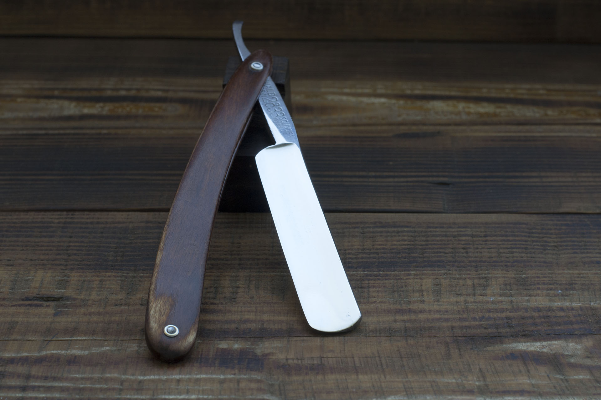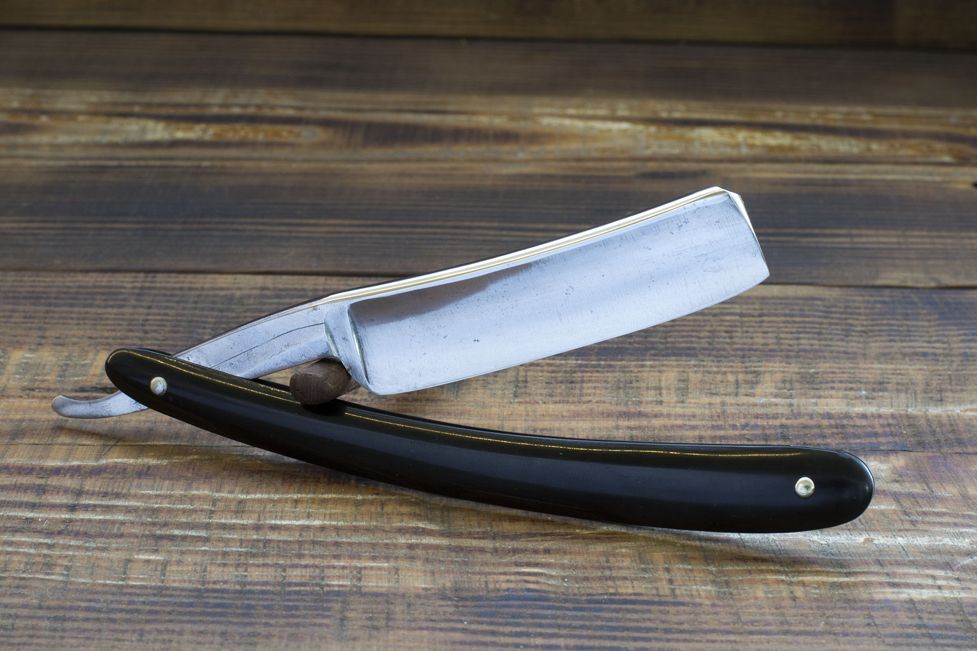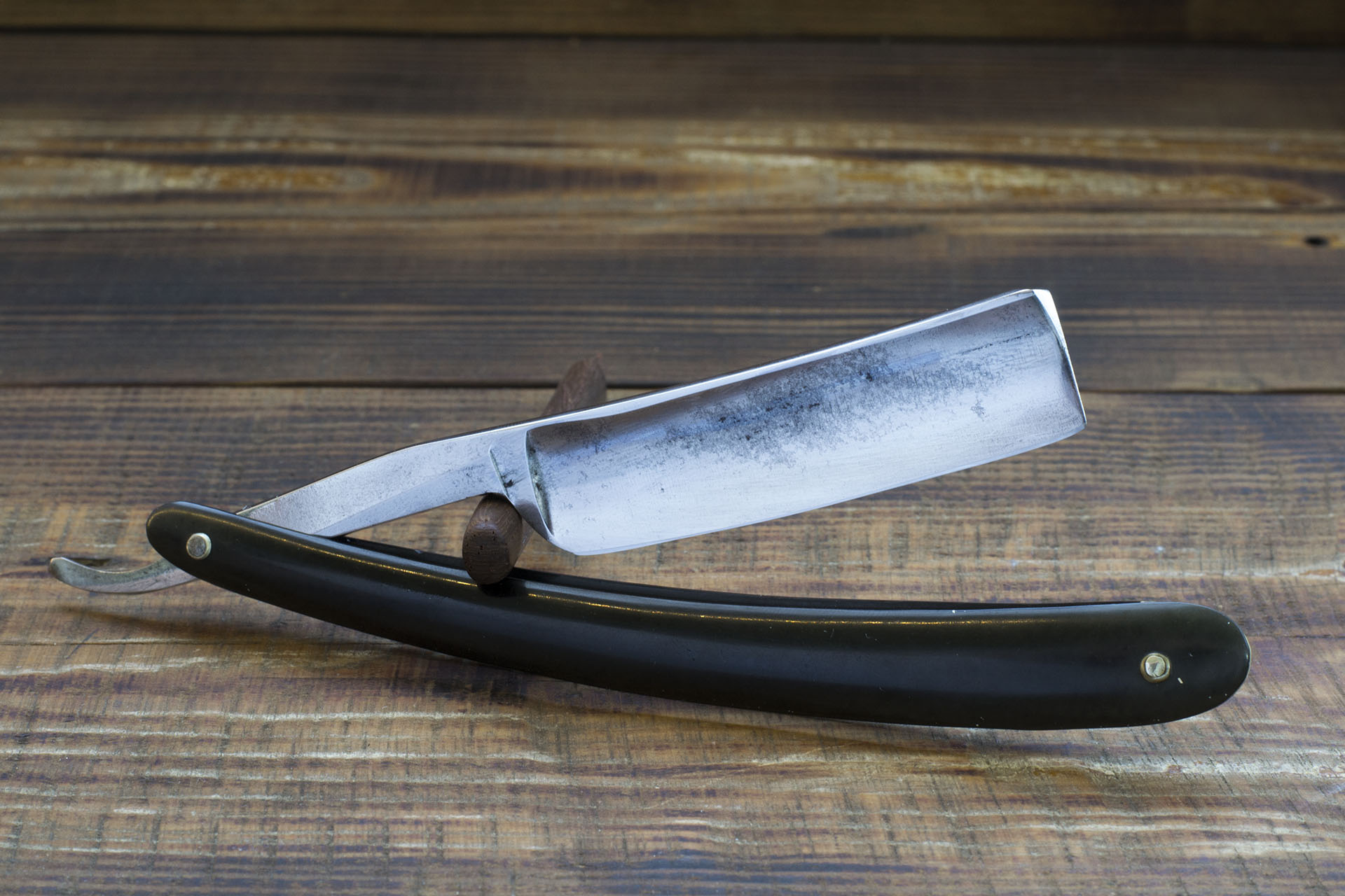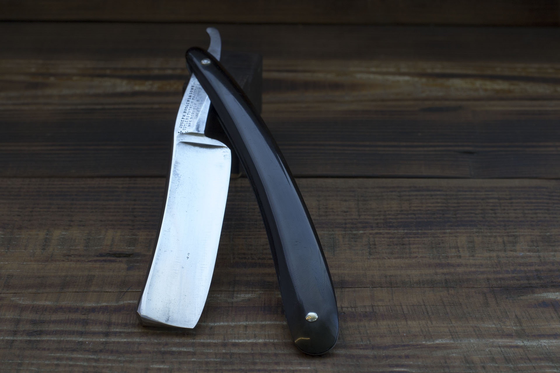 Joseph Rodgers. Sheffield. Опасная бритва от одного из старейших шеффидских производителей - Joseph Rodgers & Sons. Долгие годы эта известная компания была одним из крупнейших производителей столовых приборов и режущего инструмента в Шеффилде, а так же являлась поставщиком Их Величеств - царствующих особ Британской империи. Так же изделия этой компании с успехом шли на экспорт и завоевывали многочисленные награды на промышленных выставках того времени. Достаточно вспомнить знаменитый норфолский нож 1851 года. Данная образец бритвы от Джозефа Роджерса имеет ширину в 19.6 мм, бритва слегка сужается к носику, (примерно с 19.8 мм до 19.2мм) что скорее всего является заслугой предыдущего точильщика, неправильно распределявшего давление. Кроме того на полотне есть мелкий питтинг у пяточки и некоторые другие следы окисления, к сожалению, многие называт это патиной, следами времени и тд, но это не совсем корректно поскольку патина отлично уходит после полировки, а следы времени слишком расплывчатое понятие . Чтобы удешевить конечный продукт, я не стал исправлять геометрию полотна, а так же не стал бороться с окислением. Из проведенных работ - полировка полотна, замена рукояти и заточка. Следует сказать что бритва великолепно заточилась, фаска режущей кромки тонкая и равномерная. Вогнутость порядка 3/4, в целом очень рекомендую данную бритву для новичка а так же для опытного пользователя в качестве запасной недорогой но очень приличной бритвы Продано Joseph Show