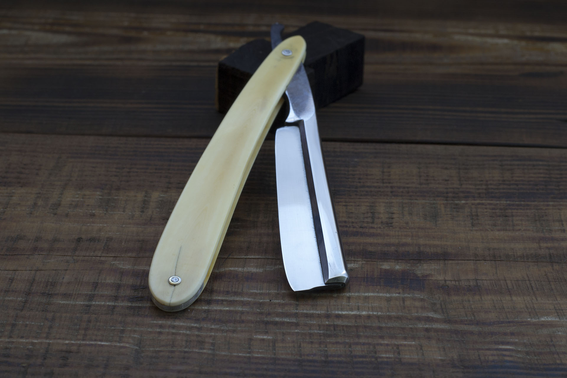 Старый шведский фрейм, произведенный на фабрике Карла Виктора Хельестранда, в городе Эскильстуна, Швеция. Лезвие сделано из бессемеровской стали, компании Sandvik, довольно молодой на тот момент фирмы. Сам же C.V. Heljestrand является одной из наиболее признанных шведских компаний по производству режущего инструмента и тем примечательнее их сотрудничество. Рукоять выполнена из бивня большого жвачного животного, имя которого нельзя писать на некоторых площадках. Ширина полотна 18.5 мм. (6/8), бритва находится в отличном состоянии, конечно ее нельзя назвать новой, тем не менее она использовалась очень аккуратно, все что мне пришлось сделать - немного почистить рукоять, с разборкой, отполировать и заточить полотно. Очень удобный экль с подпальцевой выемкой и двусторонней насечкой, коробка в комплекте. Сталь твердая и стойкая к подтуплению. Бритва заточена и готова к бритью, отлично подойдет новичкам и опытным пользователям. Продано Carl Show