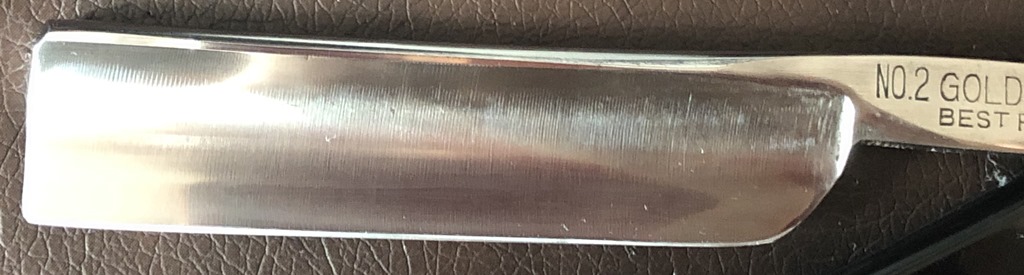 Очень долго лежали у меня две бритвы,на которые я совершенно не обращал внимания, по причине того, что чисто интуитивно они мне не понравились, а визуально сталь клинков показалась мне какой то странной. Но, недавно решил ими заняться и, честно скажу, в этот раз опыт и интуиция меня подвели. Помимо того, что обе бритвы были совершенно непользованными,но со "следами времени", то и сталь прекрасно точилась, доводилась на тонких натуральных абразивах, естественно с прохождением всевозможных тестов. Но, самое главное, первое бритье превзошло все мои ожидания. (обычно, когда у меня есть вопросы и сомнения по поводу той или иной бритвы, то после заточки, на момент бритья, беру с собой ещё одну проверенную бритву,чтобы нормально завершить процесс и не мучить себя некачественным бритьём).Бритье показалось близкое к эталонному, без каких либо неудобств, раздражений и прочих неприятных ощущений. К тому же, сама бритва имеет средний размер и по многим показателям идеально подойдет для новичка,ну а для опытного товарища вообще говорить не приходится. Так как первая бритва так и не дошла до моей темы продаж и была сразу продана, то представлю второй экземпляр.